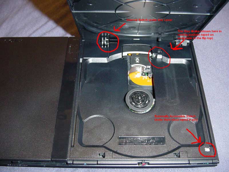 เช่น เอาฝาปิดถาดรับแผ่น DVD ออกและมีแผ่นพลาสติกรูปร่างพิเศษเป็นเครื่องมือช่วยในการกดเอาถาดใส่แผ่นเกมออกมา