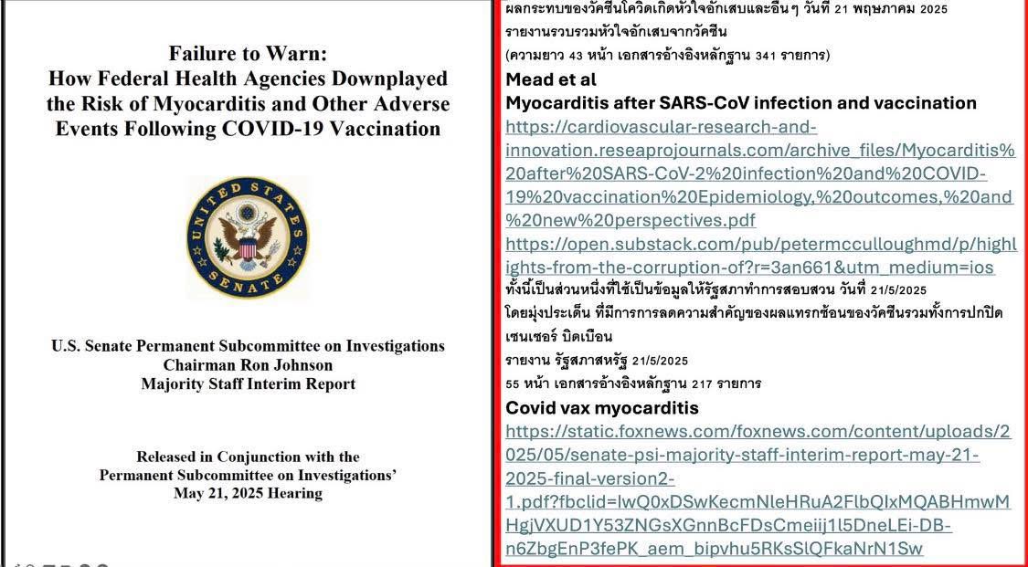 ประกาศ ให้ทราบทั่วกันวัคซีน mRNA ก่อให้เกิดหัวใจอักเสบและอื่นๆ และมีการปิดบังข้อมูล อันตรายของวัคซีน