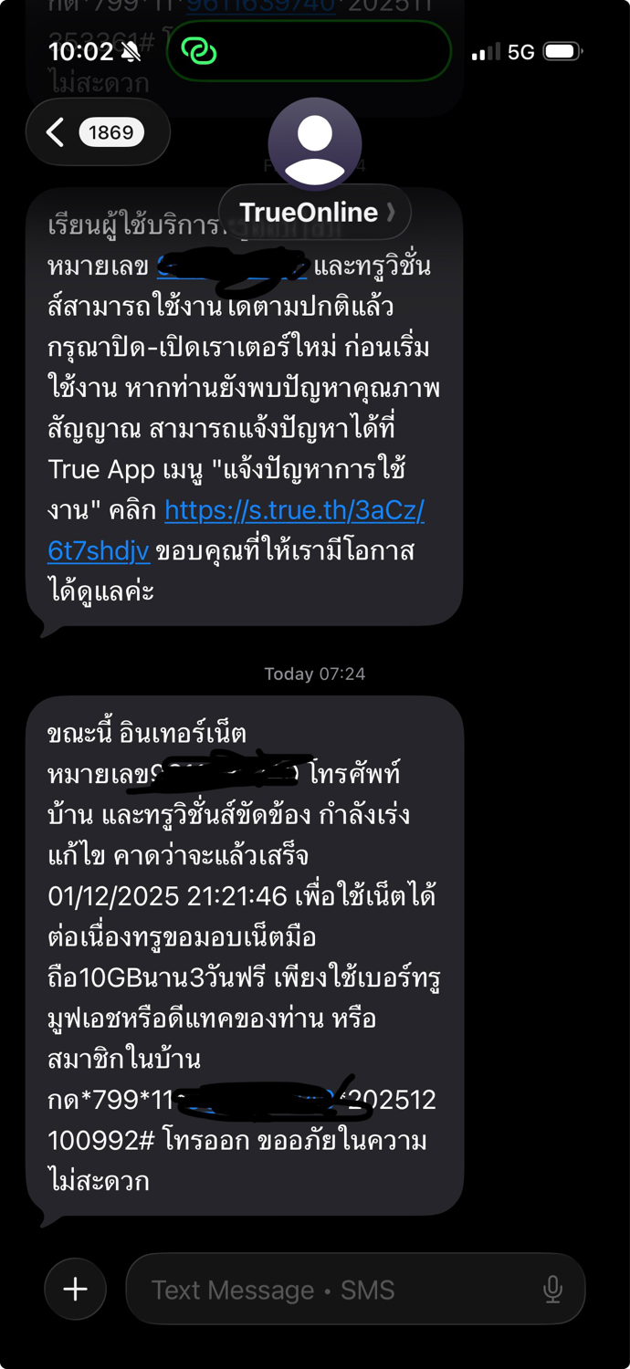 แถมบอกชดเชยเป็นเน็ทมือถือ แต่ผมไม่ได้ใช้เบอร์ true เลย ก็เหมือนไม่ได้รับการเยียวยาอะไรเลย มันรัสึกแย่กับเเบรนด์นัมากๆ เลยครับ