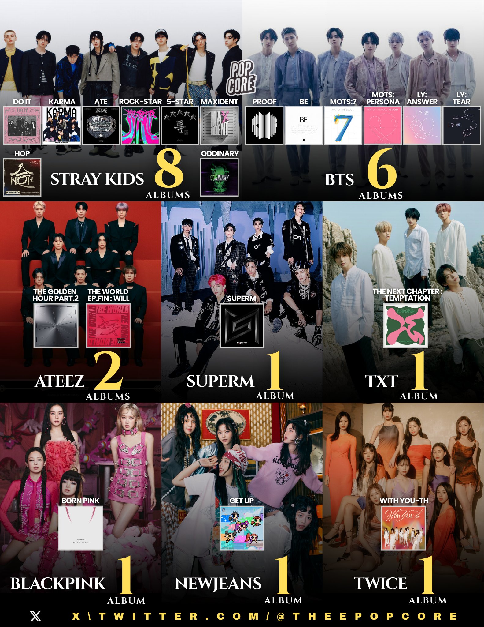 - Stray Kids เป็นวงที่มีอัลบั้มอันดับ 1 มากที่สุดในศตวรรษนี้