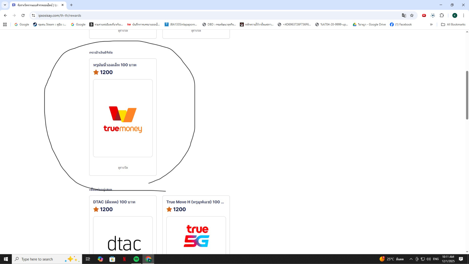 แต่หลังจากที่ผมสะสมคะแนนครบเมื่อเช้านี้เอง ผมเข้าไปกดดูรางวัล กลับไม่มีตัวเลือกให้แลกของรางวัลนี้ซะงั้น มีแต่ของรางวัลที่เป็นเครด้ตบัตรเติมเงินธรรมดา กับพวกบัตรของขวัญที่ต้องใช้ช้อปเฉพาะที่ (ซึ่งก็เดาว่าไม่ค่อยมีใครอยากได้เท่าไหร่) งงมาก เลยลองใช้เบราวเซอร์อื่นที่เรายังไม่ได้ใช้บัญชีนี้ล็อคอินเข้สไปดูของรางวัลอีกครั้ง ปรากฎว่าเอ้าา ก็ยังมีที่เป็น True Wallet อยู่หนิ เลยลองล็อคอินผ่านเครื่องนั้นเข้าไปใหม่ รางวัลส่วนนี้ก็หายไปเหมือนเดิม เลือกได้แค่รางวัลง่อยๆที่บอกไปข้างต้นเท่านั้น