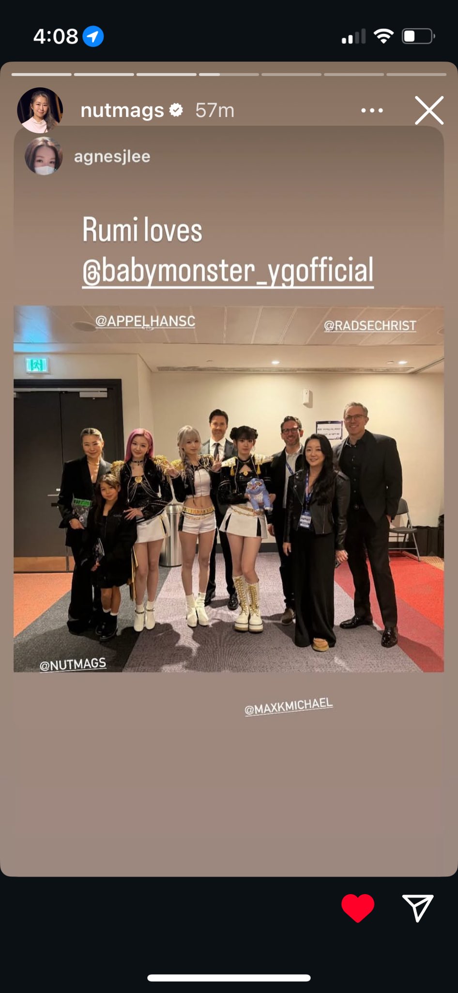 ทั้ง 3 คนของ BABYMONSTER ที่ได้มาแสดงในครั้งนี้ หลังจากนั้น ทางผู้กำกับ Maggie Kang ได้บอกเล่าแก่เด็กๆเบม่อน ว่า ลูกสาวของเธอน้อง RUMI