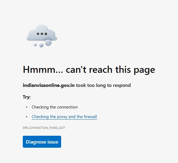 ช่วงนี้พยายามเข้าเวบ https://indianvisaonline.gov.in/visa/tvoa.html เพื่อจะขอวีซ่าอินเดียแบบ e-Tourist visa แล้วเข้าเวบไม่ได้เลยค่ะ (แบบในรูป) มีท่านไหนเข้าเวบได้บ้างไหมคะ เห็นว่าถ้าจะไปขอวีซ่าที่ผ