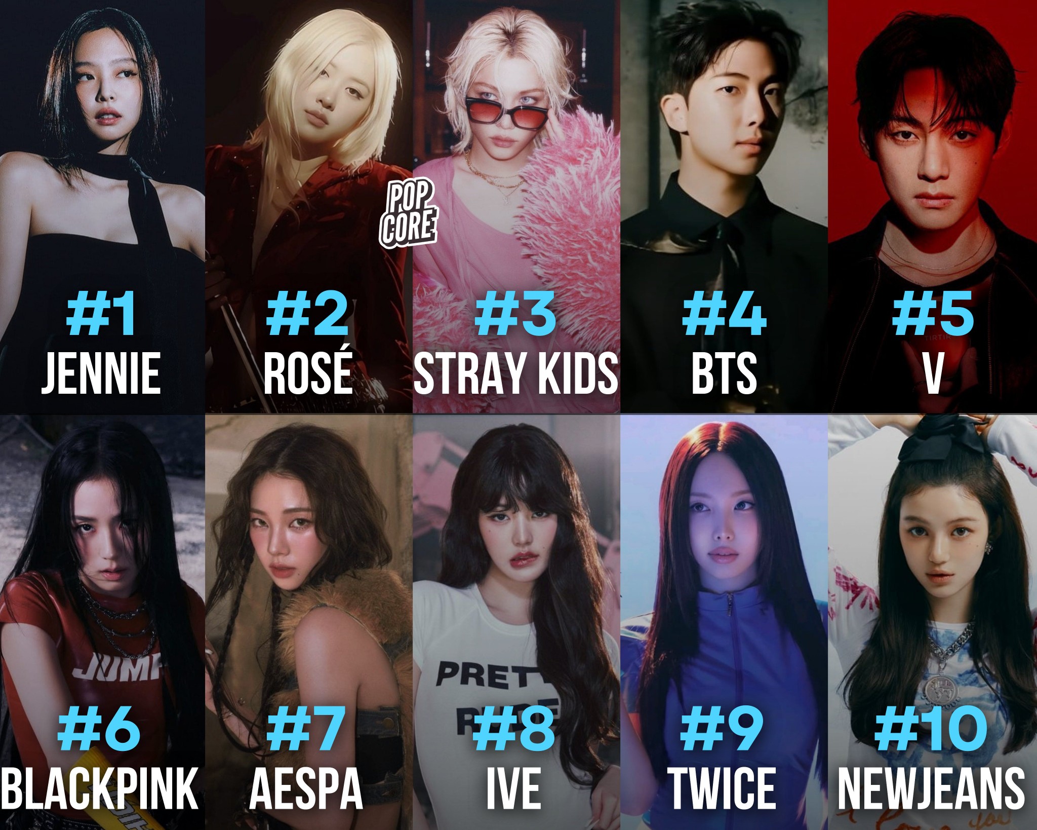 10 อันดับแรกจากรายชื่อ '30 อันดับ K-Idols แห่งปี' ของ Forbes Korea