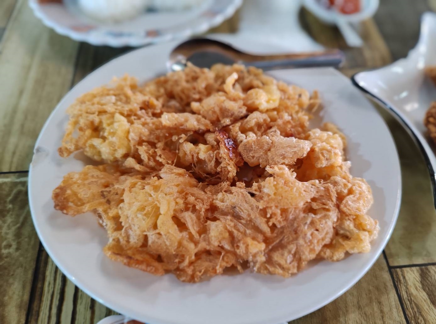 ไข่เจียวกรอบ ๆ มีเนื้อปูไม่มากนัก