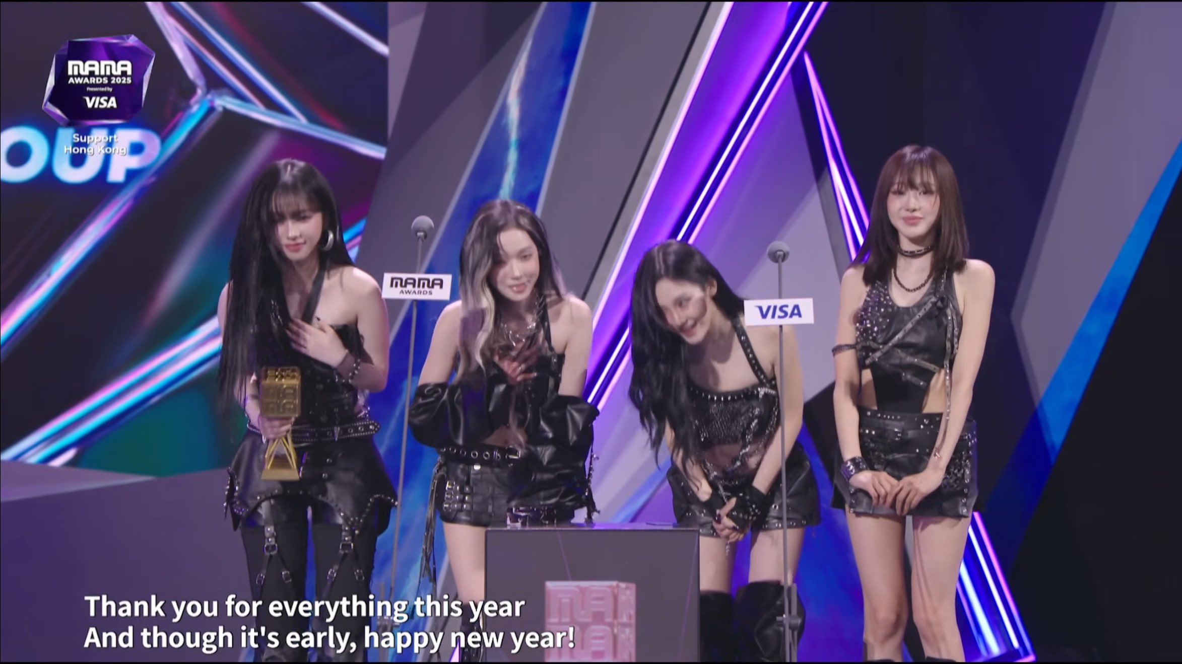 aespa กล่าวสุนทรพจน์รับรางวัล “Best Female Group” ในงานประกาศรางวัล MAMA Awards ประจำปี 2025: