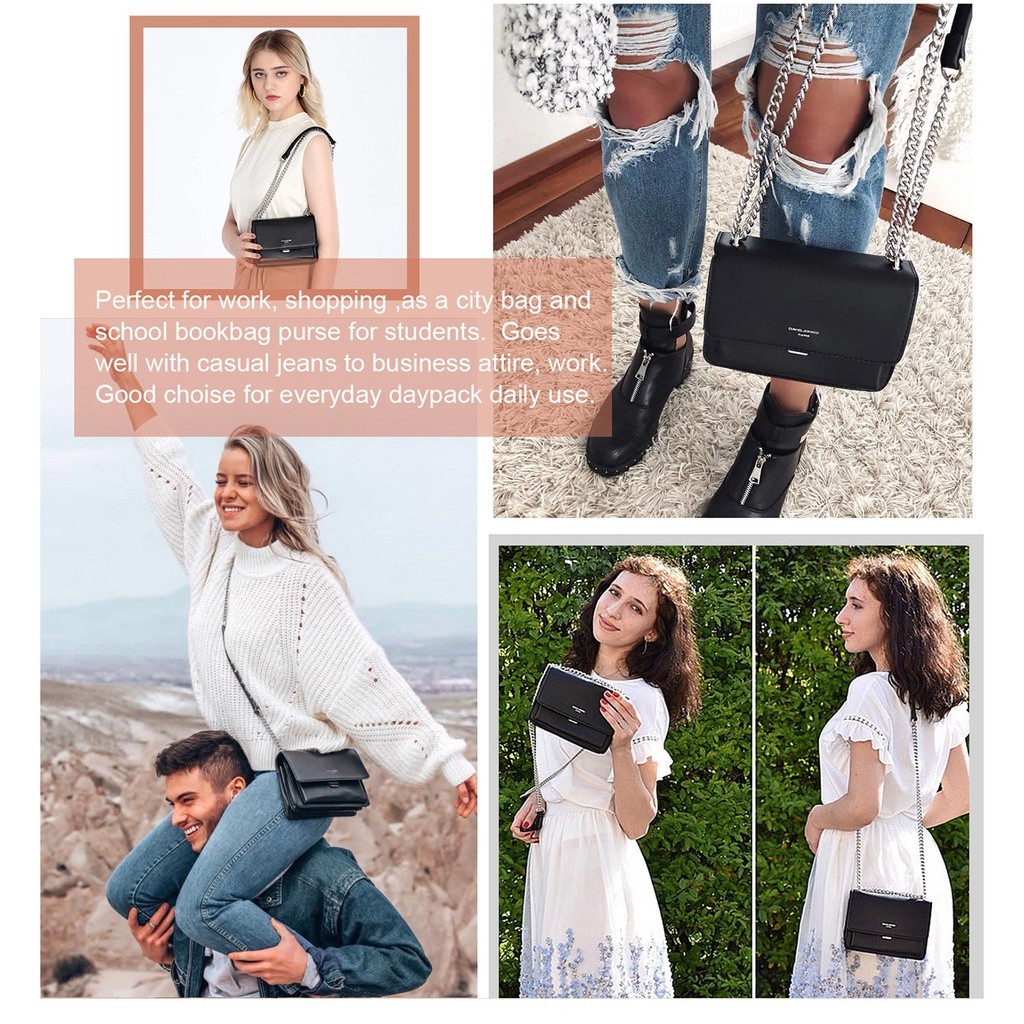 งานจริงใช้งานได้หลากหลายทั้งวันทำงาน ประชุมนอกออฟฟิศ หรือเดินเล่นในเมือง สายโซ่ยาวราว 130 ซม. สะพายเฉียงแล้วตัวไม่ล้นเฟรมถ่ายรูป โทนสีมีให้เลือกทั้งดำ น้ำตาล ชมพู และลายปริ้นต์ แมตช์เสื้อผ้าสไตล์มินิมอลได้ง่าย สำหรับคนที่อยากมีกระเป๋าใบเล็กที่ดูสุภาพในที่ทำงานและยังพกไปเที่ยวได้ต่อ กระเป๋าสะพายข้าง David Jones Paris ใบนี้ตอบโจทย์ทั้งดีไซน์และฟังก์ชัน 👝✨