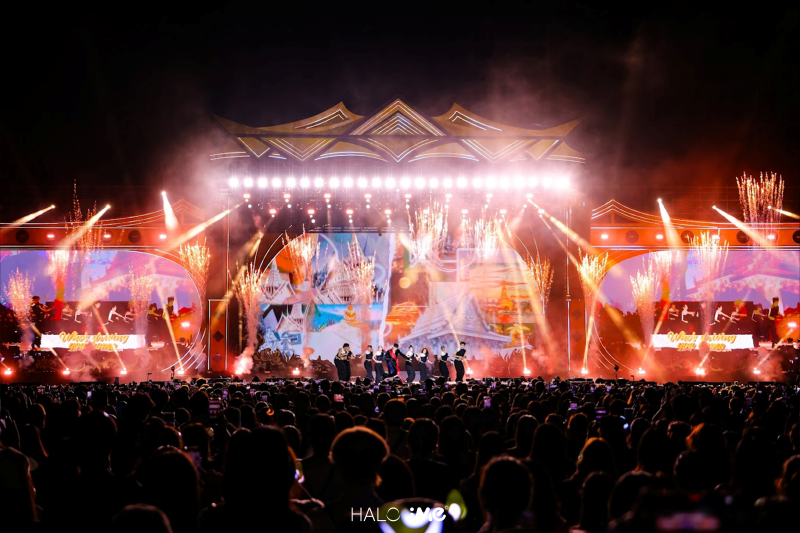งานนี้มาพร้อมโปรดักชันจัดหนักจัดเต็ม โชว์ความเป็นไทยให้ก้องโลก ทั้งเวทีที่ออกแบบขึ้นเพื่อคอนเสิร์ตนี้โดยเฉพาะ กราฟิกที่สอดแทรกกลิ่นอายความเป็นไทยแบบตะโกน รวมถึงบรรยากาศหน้างานที่ถูกเนรมิตราวกับยก “งานวัด” มาไว้ในสเตเดียม เท่านั้นยังไม่พอ แบมแบม ยังพาเกสต์พิเศษศิลปินระดับแถวหน้าแห่งวงการ T-POP อย่าง