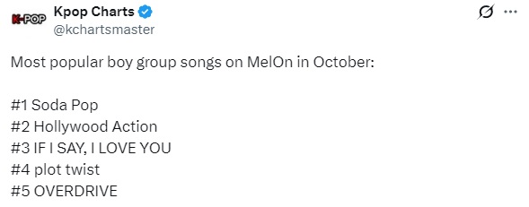 เพลงจากวงบอยกรุ๊ปที่ได้รับความนิยมสูงสุดบน MelOn ประจำเดือนพฤศจิกายนที่ผ่านมา