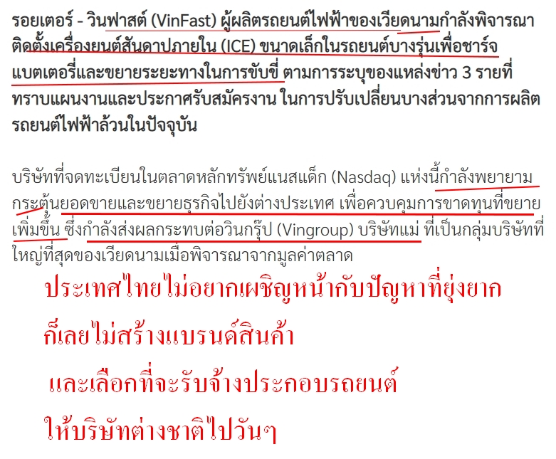 และดูเหมือนว่าเทคโนโลยียานยนต์ของเรากำลังจะตามหลังเวียดนามอยู่