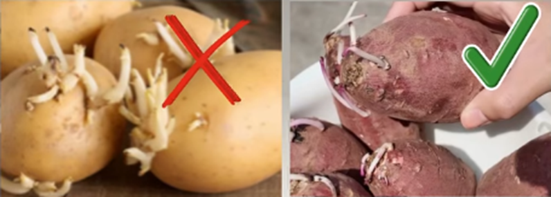 ถ้าเป็นมันฝรั่ง ถ้ารากมันงอกแล้ว หัวมันนั้นจะมีพิษ มันจะมีสารที่ชื่อว่าโซลานีน อันนี้จะมีในมันฝรั่ง แต่จะไม่มีในมันเทศค่ะ