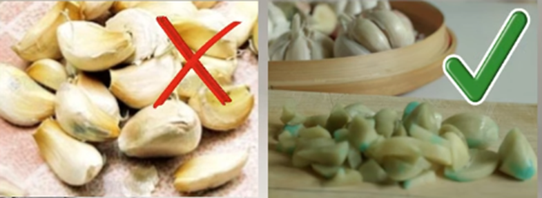 กระเทียมที่มีสีเขียวอมฟ้า