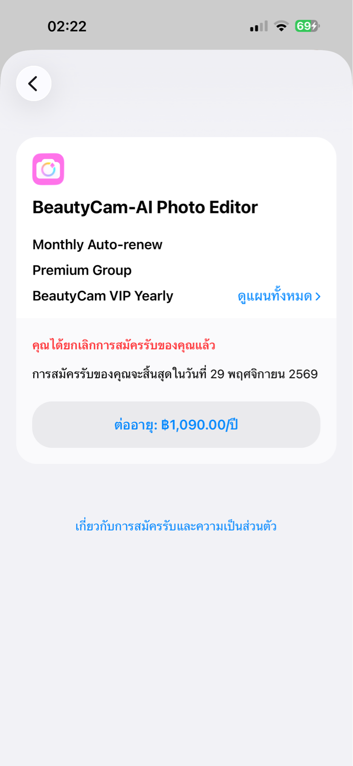 พอดีผมโหลด beauty cam มาทดลองใช้ 3 วันแล้วก็ได้ยกเลิกการต่ออายุไปแล้วตั้งแต่วันแรกที่ทดลอง (29 พย 68)แล้วมันก็ขึ้นว่าได้ยกเลิกแล้ว แต่มันก็ยังเรียกเก็บเงินอยู่ พอดีผมผูกบัญชีกับ Truemoney แล้วมันหักไม่ได้ก็ไม่ได้สนใจ เพราะยกเลิกไปแล้ว แต่พอวันนี้จะโหลดแอพมันกลับโหลดไม่ได้ และ ก็จ่ายเงินผ่านทรูไม่ได้ จนวันนี้เลยลองเปลี่ยนการจ่ายเงินจาก Truemoney เป็น มือถือ กลายเป็นโดนหักเงินผ่านแอพ True เอง เฉยเลย ( 2 ธ.ค. 68) ใครพอจะมีวิธีแก้ได้บ้างไหมครับ งง มาก