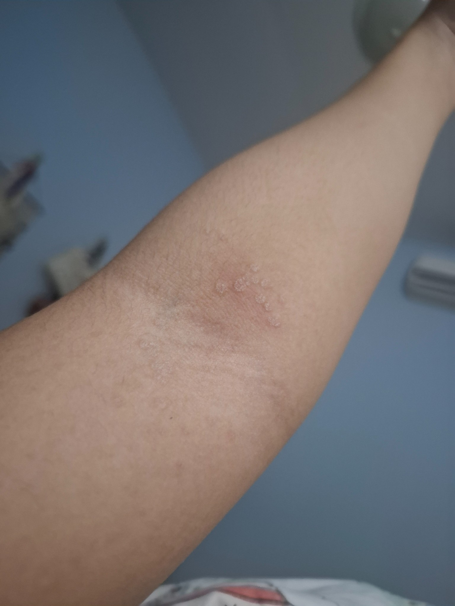 มีรอยแดงขึ้นที่ข้อพับแขน ไม่รู้แมลง หรืออะไรกัด ผู้รู้ช่วยตอบหน่อยครับ