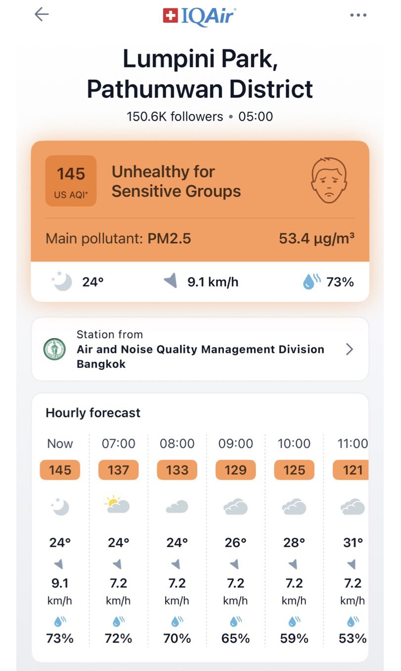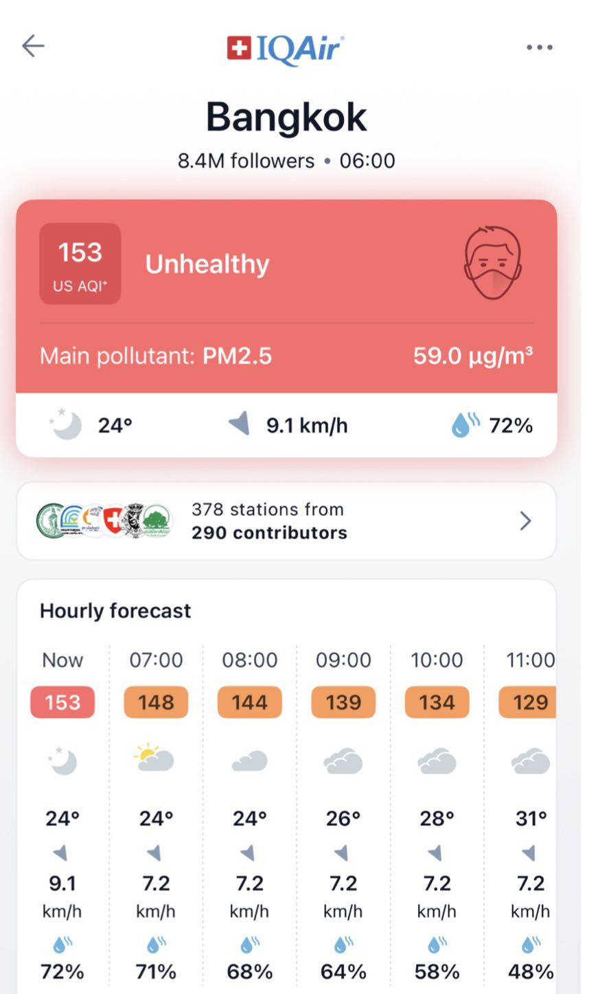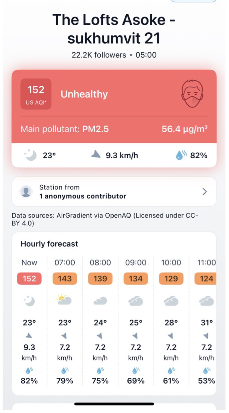 แถวบ้านเรา พระราม 4 คลองเตย ค่า AQI 153