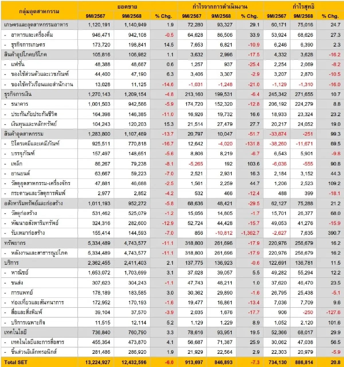 SET-mai ใครรุ่ง ใครร่วง ? เปิดงบบริษัทจดทะเบียนไทย 9 เดือน 2568 ยอดขายลด-กำไรแรง
