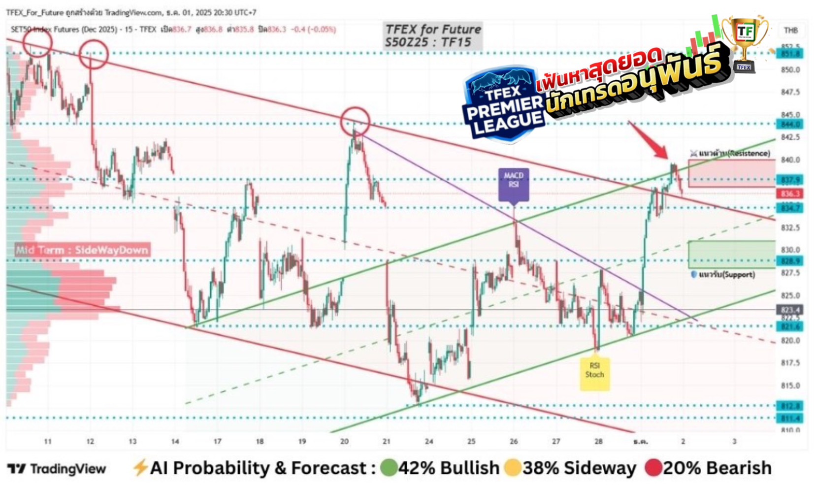 ⚔️แนวต้าน (Resistant) : 837-840 (จุดร่วม 6 Indicators)