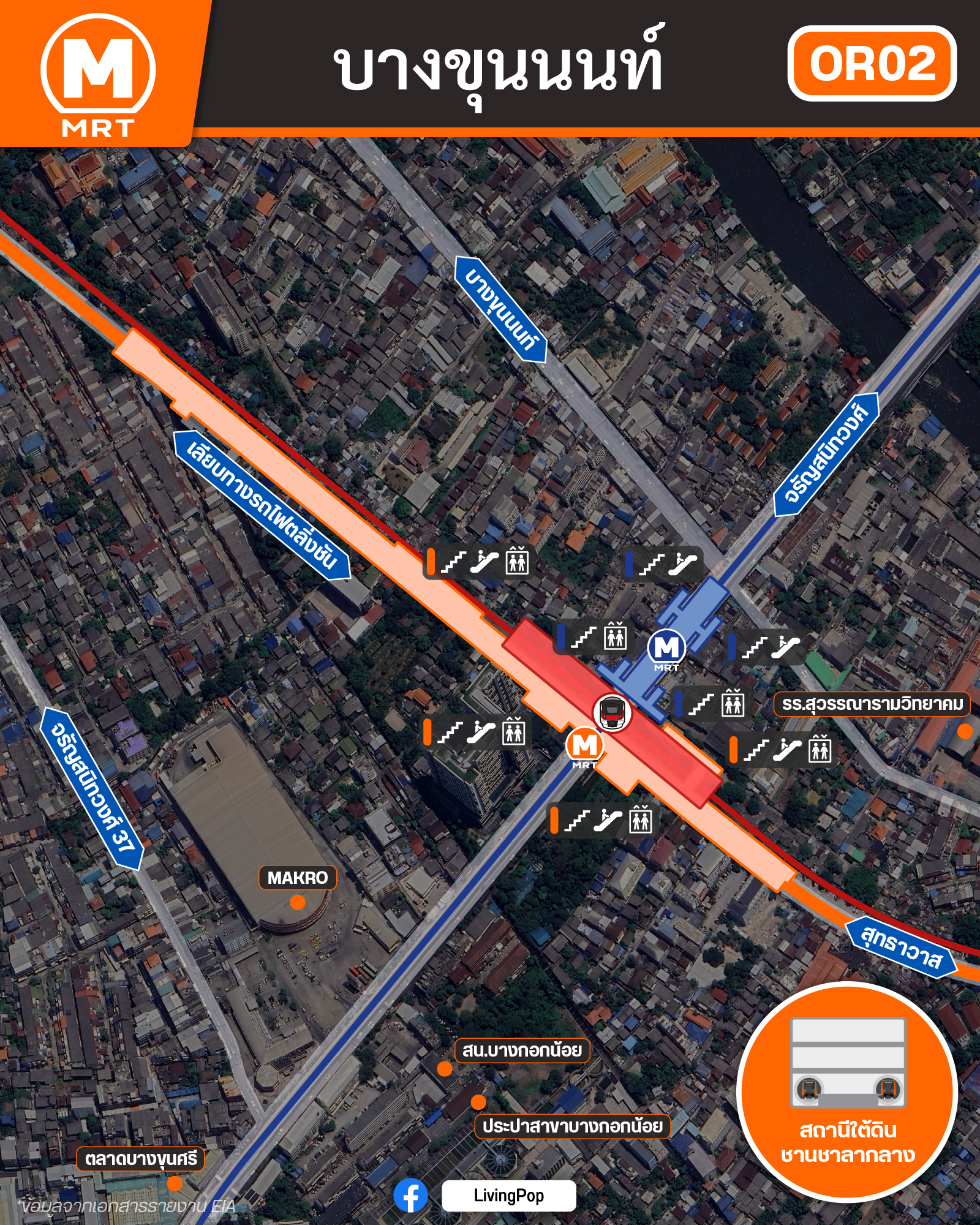 และทำลิฟท์ให้ลงมาทะลุชั้นใต้ดินเพื่อที่จะเข้าสู่ตัวสถานีสายสีส้มบางขุนนนท์ได้ง่ายๆ