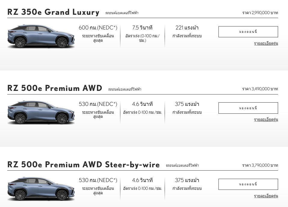 - RZ 350e (FWD) — วิ่งไกลขึ้น ประหยัดขึ้น ลุคเรียบหรู