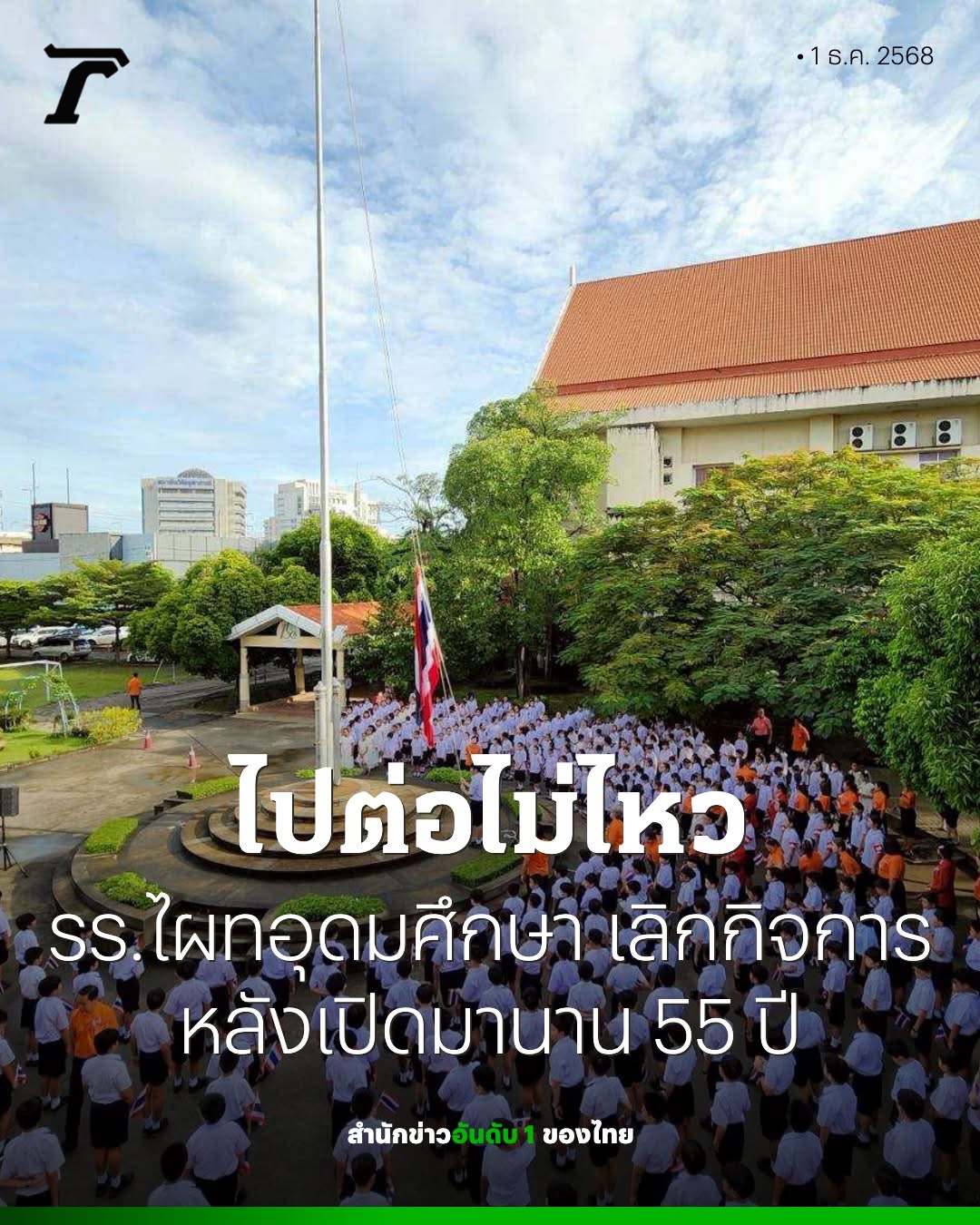 "โรงเรียนไผทอุดมศึกษา" ร่อนจดหมายถึงผู้ปกครอง ประกาศเลิกกิจการ หลังเปิดมา 55 ปี สาเหตุจากโครงสร้างประชากร เด็กเกิดน้อยลง และขาดเสถียรภาพทางการเงิน ประสานโรงเรียนใกล้เคียงรับเด็กเรียนต่อ