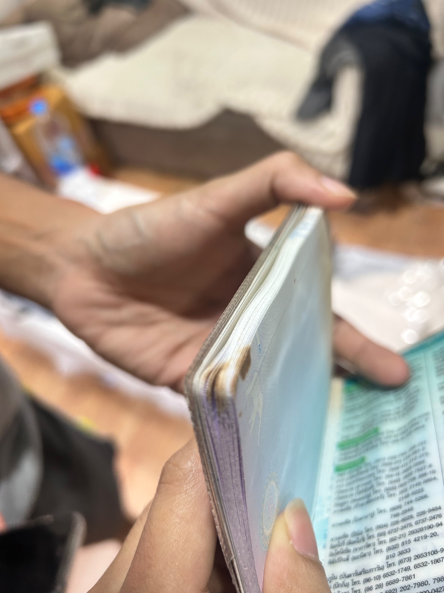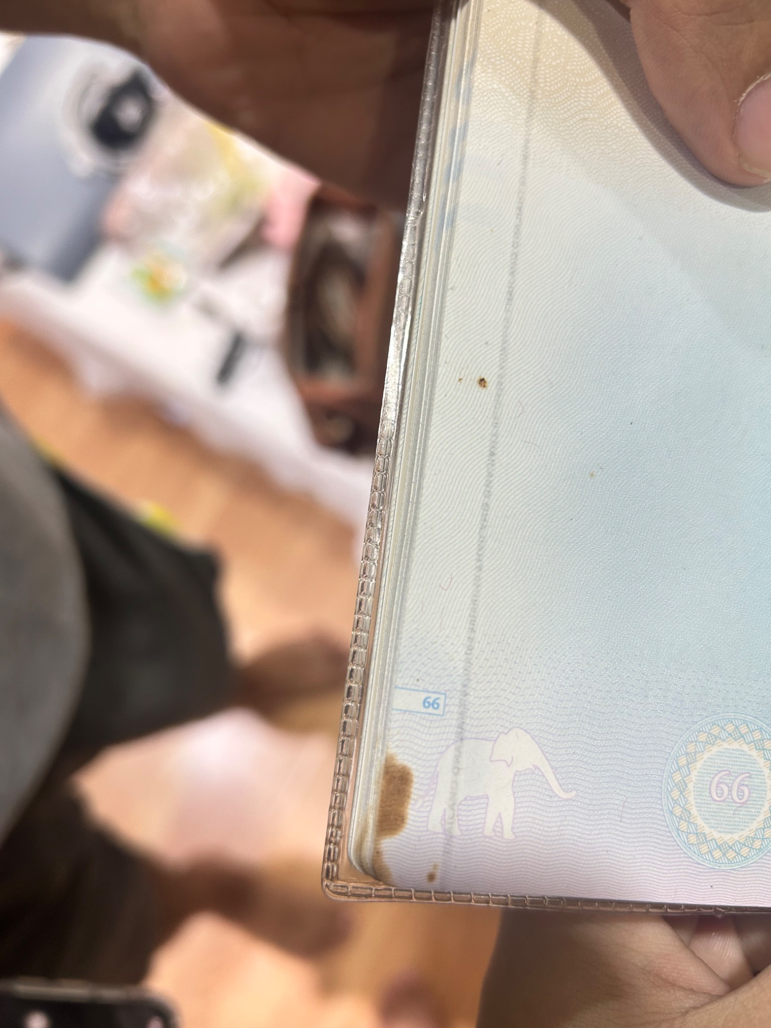 สอบถามค่ะ ถ้าพาสปอร์ตเลอะแบบในรูป ต้องถึงขั้นทำใหม่ไหมคะ แต่หน้าที่มีข้อมูลส่วนบุคคลไม่ได้เลอะอะไรค่ะ
