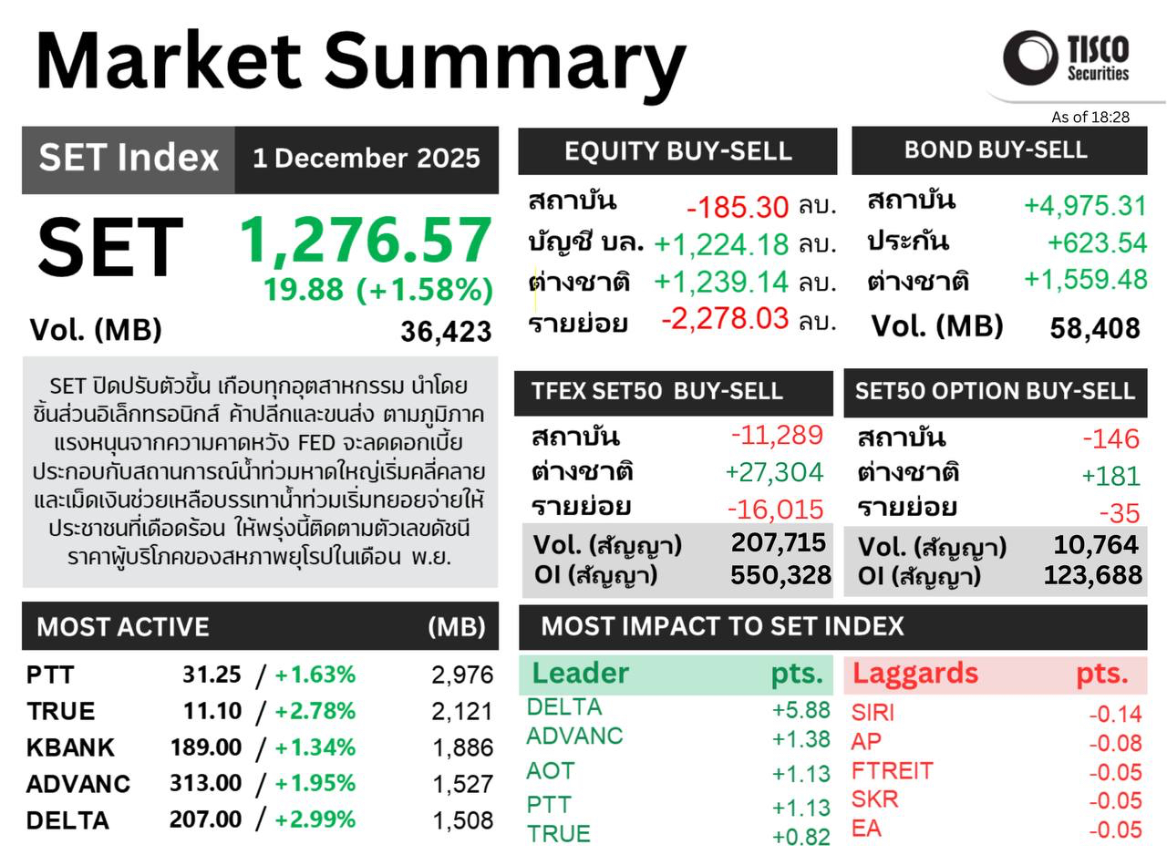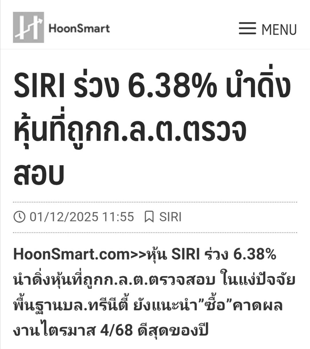 กรอบการลงทุน วันที่ 1 ธันวาคม 2025