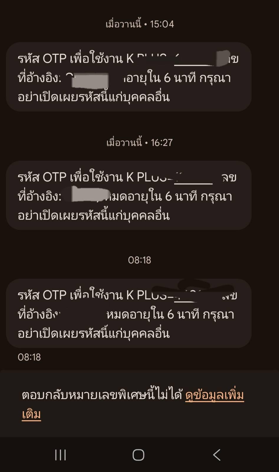วันนี้ตอนเช้า ได้รับ OTP อีก 3 ครั้งในเวลาใกล้ๆกัน จาก