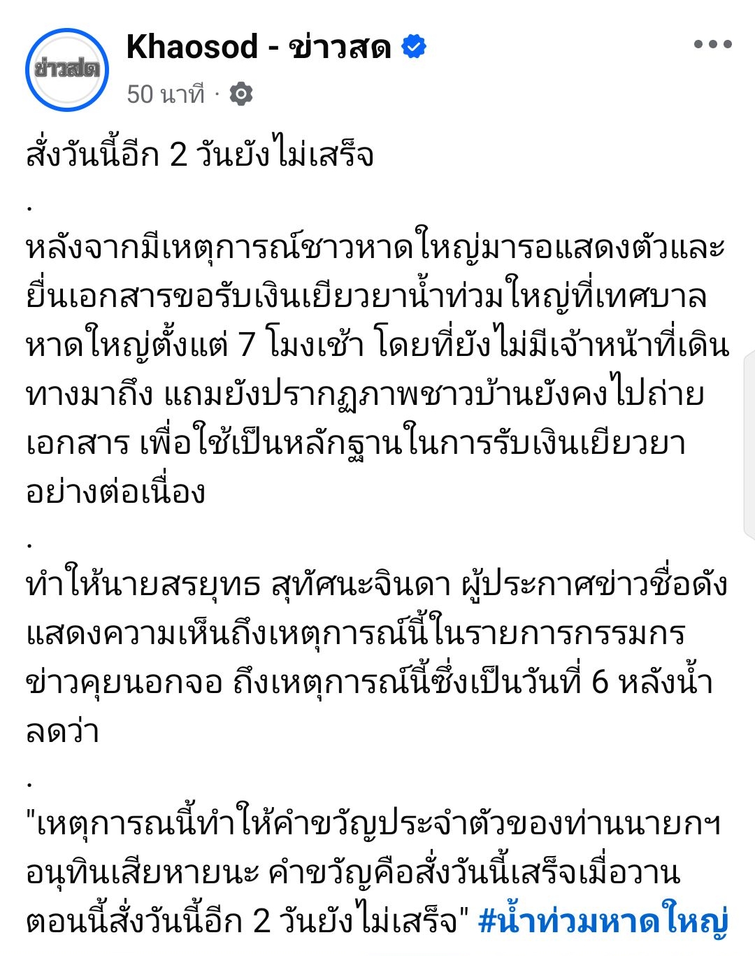 อยากเป็นรัฐบาล แต่แก้ปัญหาไม่เป็น | ติ่งข่าว | วันที่ 1 ธ.ค. 68 . น้ำท่วมใต้ครั้งนี้ เห็นทีจะเป็นแผลใหญ่ เมื่อรัฐบาลไม่สามารถจัดการช่วยเหลือ แก้ปัญหาใดๆ โดยเฉพาะหาดใหญ่ ที่เกิดน้ำท่วมจนมีคนตายไปกว่าร้
