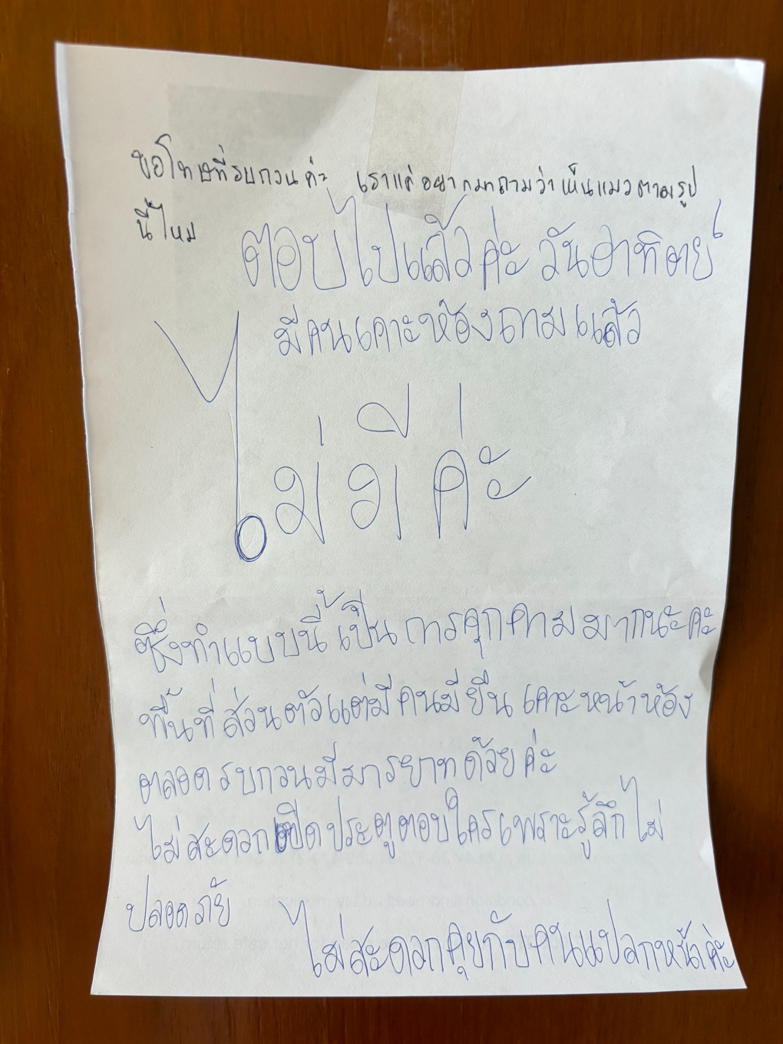 ต้องบอกก่อนว่าที่อพาร์ทเม้นท์ไม่ให้เลี้ยงแมว แต่เรามีเหตุจำเป็นต้องรับน้องมาเลี้ยงชั่วคราวเพราะเจ้าของต้องไปทำงานต่างประเทศหลายเดือน และเราเป็นคนเดียวที่มีประสบการณ์เลี้ยงแมว แมวเราตกไปทางระเบียงจากชั้น 5 ซึ่งเราตามหาไม่น่าเกินครึ่งชั่วโมงหลังจากน้องหาย เราไปเคาะห้องที่คาดว่าน้องจะตกหรือปีนไปได้เนื่องจากที่ระเบียงมีการติดตาข่ายไว้แต่ไม่ได้แนบกับขอบปูน ซึ่งห้องชั้น 4 ที่ตรงกับห้องเราพอเคาะประตูเขาก็เปิดทันที เราถามว่าเขาเห็นแมวตกมาที่ระเบียงมั้ย เขาบอกว่าไม่เจอแมวตกลงมาเลยทั้งที่เขาปิดประตูระเบียงอยู่ ตอนนั้นเราไม่ทันเอะใจว่าเขาเพิ่งปิดประตูระเบียงหรือตอบเรามาทั้งที่ไม่ได้ไปดูก่อนกันแน่ ส่วนห้องที่ไม่ได้เปิดประตูมาคุยเราเอากระดาษที่เขียนว่าตามหาแมวสีนี้ๆพันธ์นี้ๆสอดใต้ประตู ซึ่งไม่มีใครโทรมาเลย วันที่ 2 เราเลยเตรียมรูปปริ้นท์ใส่กระดาษเอาไปสอดไว้ใต้ประตูอีกครั้งตั้งแต่ช่วงเช้า เราพิมพ์ข้อความไว้ว่าเราขอโทษมากๆที่รบกวนเพราะเราก็กลัวเพื่อนร่วมหอจะรำคาญ พอตกเย็นเราลองไปเคาะประตูเพื่อสอบถามอีกรอบ ทุกห้องเปิดออกมาคุยกับเราหมด บอกว่าไม่เห็นน้องเลย ถ้าเห็นจะโทรบอก แต่มีอยู่ห้องเดียวที่ไม่เปิด ก็คือห้องชั้น 4 ที่เปิดประตูแล้วบอกว่าไม่เจอแมวเราในวันแรก แล้วในวันที่ 2 มีห้องที่อยู่ชั้น 3 ซึ่งตรงกับห้องชั้น 4 และห้องเราโทรมาคุยกับเราว่าคืนนั้นเขาได้ยินเสียงแมวร้อง เสียงน่าจะมาจากด้านบนหัวเขา เราเลยพยายามเคาะห้องชั้น 4 แต่เขาไม่ยอมเปิดประตูมาคุยเลยทั้งที่ออกมามองตาแมวหลายรอบ แถมยังปิดไฟในห้องทำเหมือนไม่มีใครอยู่อีก เราพยายามเขียนกระดาษสอดเข้าไปว่าเราแค่ต้องการมาคุยเรื่องแมวเท่านั้น ทั้งๆที่วันแรกยังเปิดประตูมาคุยกับเราได้อยู่เลย ซึ่งเขาทักไลน์ไปแจ้งนิติว่าเรารบกวนเขาให้เราหยุดเคาะห้อง เราบอกนิติว่าแมวเราหาย คุณช่วยตามหาแมวให้เราได้ไหม เราสงสัยว่าแมวอาจจะตกมาอยู่ที่ชั้น 4 แต่นิติปฏิเสธ ไม่ช่วยตามหา ทั้งที่นิติบอกว่าตรงระเบียงมีตาข่ายกั้น แมวคงไม่ตกลงมาตาย อาจจะตกไปอยู่ห้องใดห้องหนึ่ง แต่พอเราขอให้ช่วยประสานงานกับห้องชั้น 4 เพราะเราสงสัย นิติกลับบอกว่าอย่าไปคิดแบบนั้นเลย เพราะไม่มีหลักฐาน ปัดความรับผิดชอบแถมไม่ช่วยเหลือใดๆ เราเองก็ไม่รู้จะทำยังไงแล้ว นิติทำเหมือนว่าของที่ตกไปอยู่ห้องอื่นเท่ากับกลายเป็นของห้องนั้น แล้วนี่เป็นสิ่งมีชีวิตทั้งตัวอะ ใครมีประสบการณ์หรือคำแนะนำบ้างไหมว่าเราควรทำยังไง