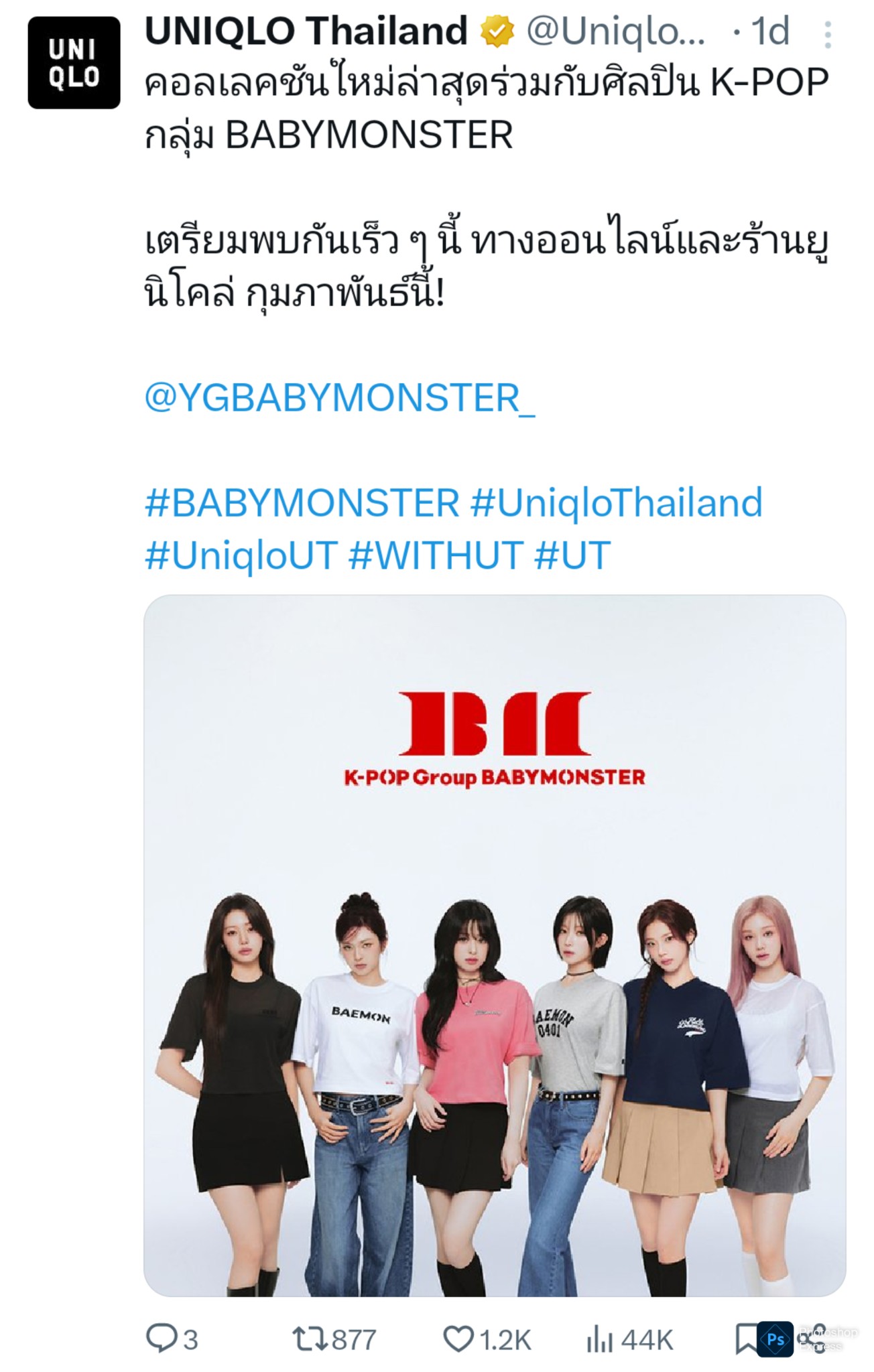 กระแสความนิยมของ BABYMONSTER ในญี่ปุ่นพุ่งแรงขึ้นอย่างน่ากลัวมาก เพจทางการของ Uniqlo Japan ได้ Tweet เมื่อวานเพื่อโฆษณา