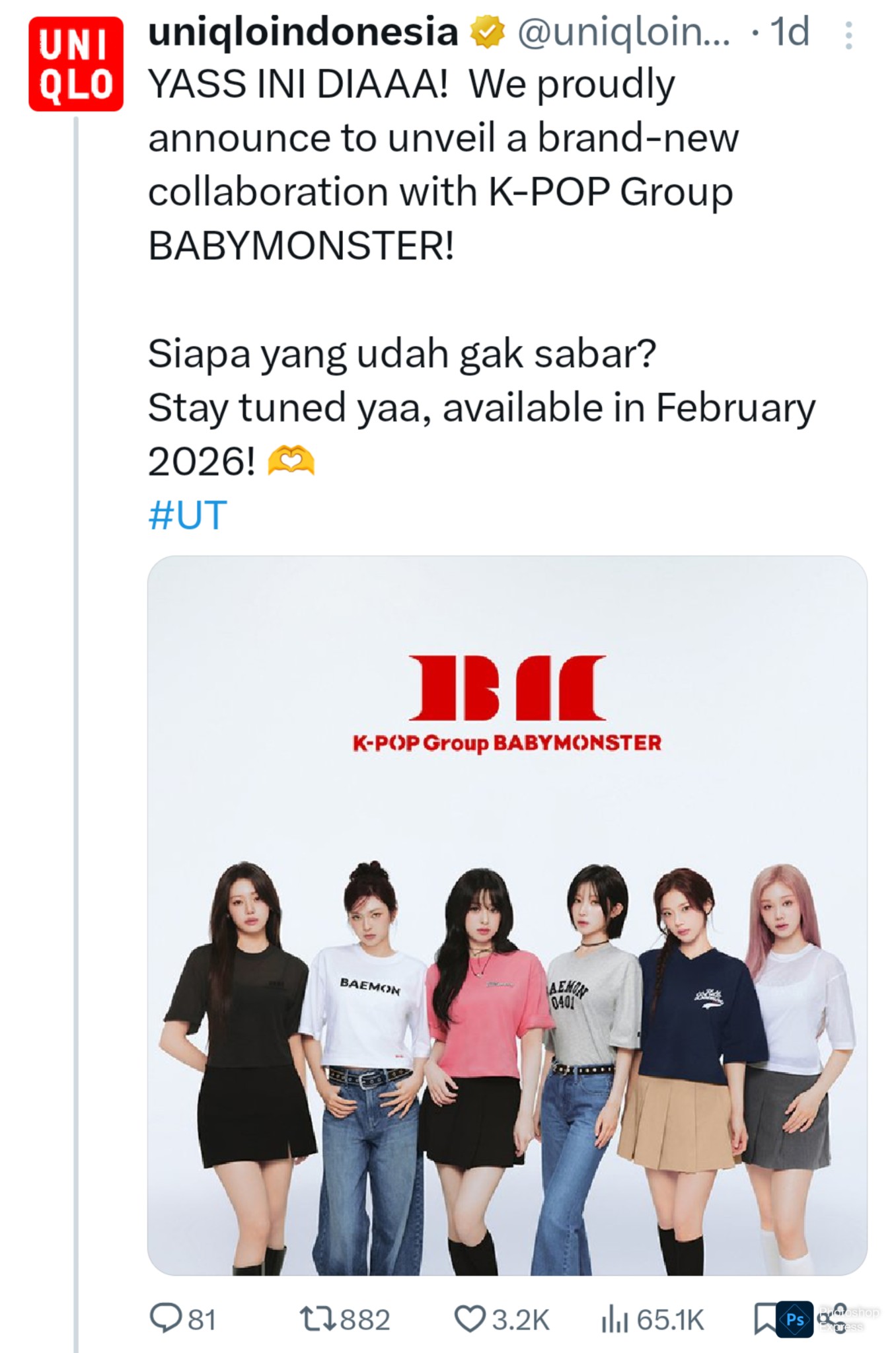 เสื้อ Uniqlo X BABYMONSTER ปรากฏว่ามีคนญี่ปุ่นเข้าไปดูมากมายตอนนี้มียอดวิวทะลุสิบล้านวิวภายในเวลาเพียงวันเดียว และยอดวิวยังคง