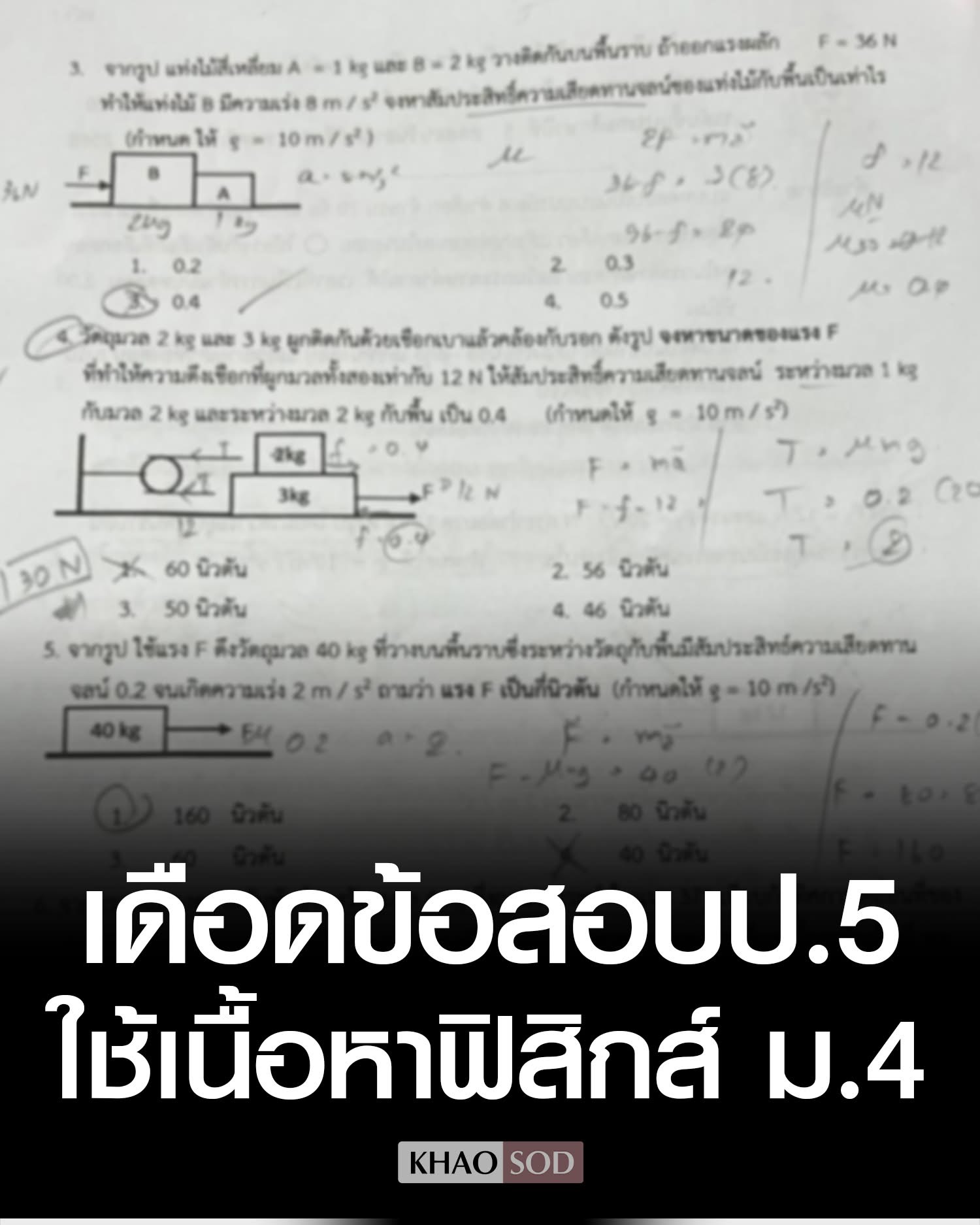เป็นโพสต์ที่มีผู้วิพากษ์วิจารณ์จำนวนมาก หลังเพจ ฟิสิกส์ใต้เตียง – The Beneath Physics โพสต์ภาพข้อสอบนักเรียน ป.5 พร้อมเขียนข้อความบรรยาย ระบุว่า เห็นข้อสอบแผ่นนี้แล้วถอนหายใจครับ นี่คือข้อสอบแข่งขันวิทยาศาสตร์ระดับ ป.5 แต่เนื้อหาที่เห็นคือการแตกแรงเวกเตอร์ (Vector Resolution) และกฎของนิวตัน ซึ่งเป็นเนื้อหาฟิสิกส์ ม.4