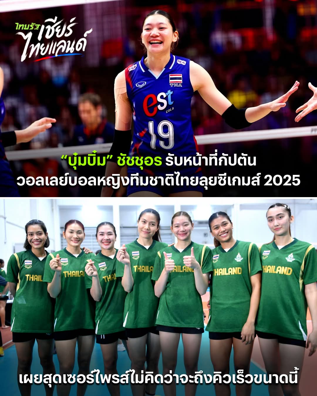 “บุ๋มบิ๋ม” ชัชชุอร โมกศรี นักวอลเลย์บอลหญิงทีมชาติไทย เปิดเผยข่าวสุดเซอร์ไพรส์ระหว่างเก็บตัวฝึกซ้อมเตรียมลุยศึกซีเกมส์ 2025 ที่ประเทศไทยเป็นเจ้าภาพ ระหว่างวันที่ 9-20 ธันวาคมนี้ หลังได้รับเลือกให้ทำหน้าที่ กัปตันทีมชาติไทย เป็นครั้งแรกในชีวิต