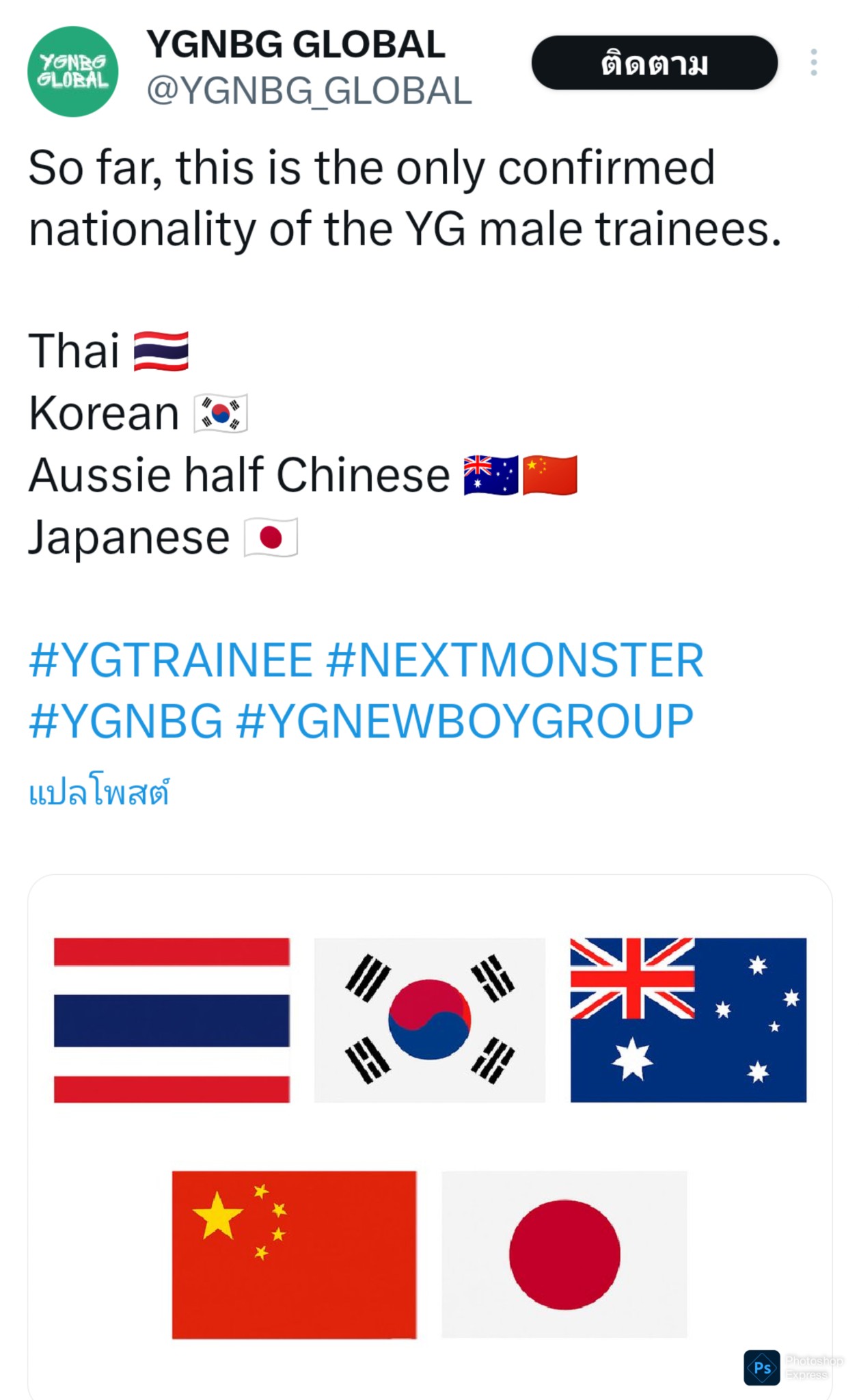 มีการยืนยันสัญชาติเด็กฝึกวายจีที่เตรียมเข้าสู่รายการ Survival Show ในปีหน้าเพื่อหาไลน์อัพสำหรับ YG New Boy Group มีเด็กไทยด้วย 1 คน