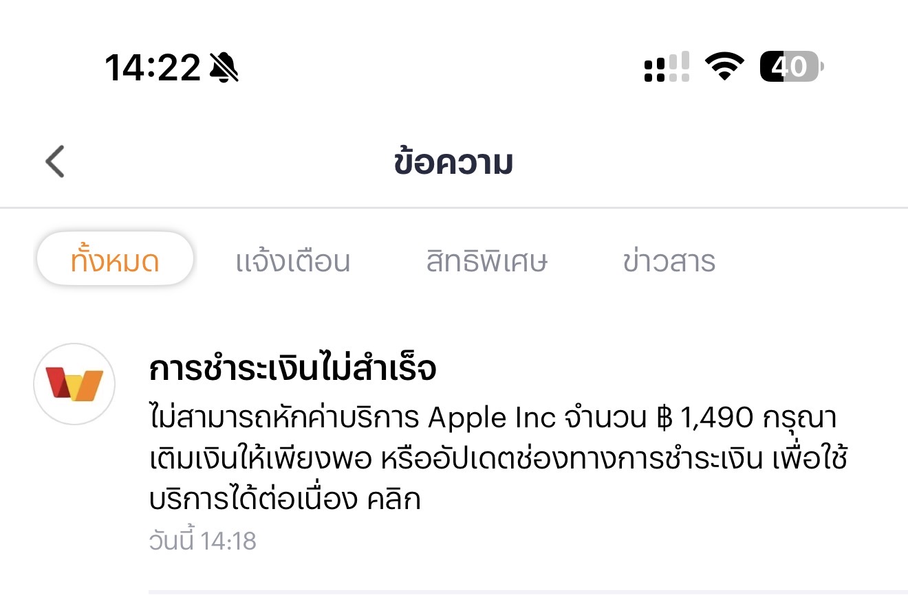 ติดต่อทรูมันนี่ แจ้งไม่สามารถตรวจสอบได้ ให้ติดต่อาApple