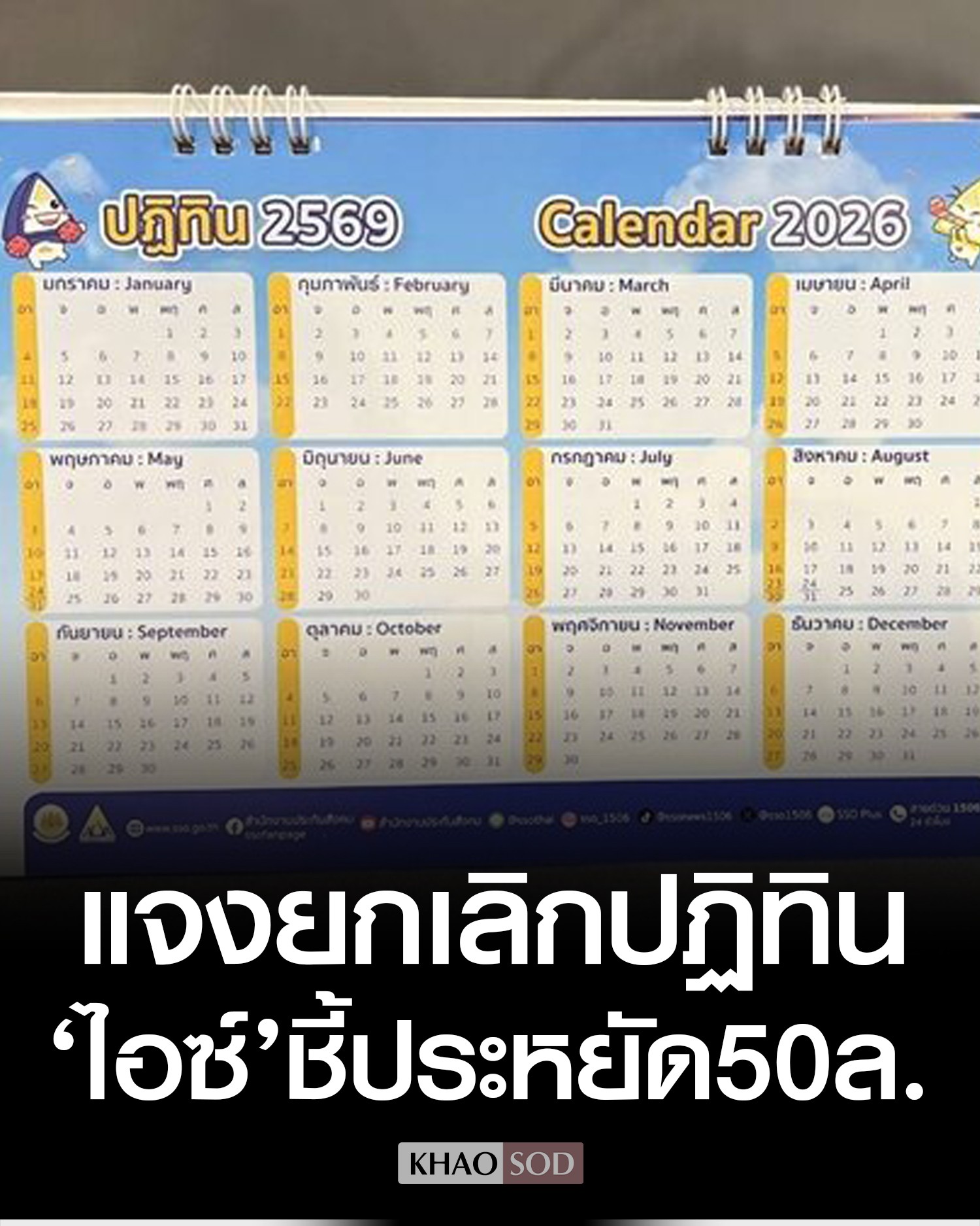 ประกันสังคม แจงยกเลิกจัดทำ ปฏิทินประกันสังคม ปี 2569 ไอซ์ รักชนก สส.ประชาชน แชร์โพสต์เขียนข้อความเจ็บจี๊ด ชี้ประหยัดทันที 50 ล้าน