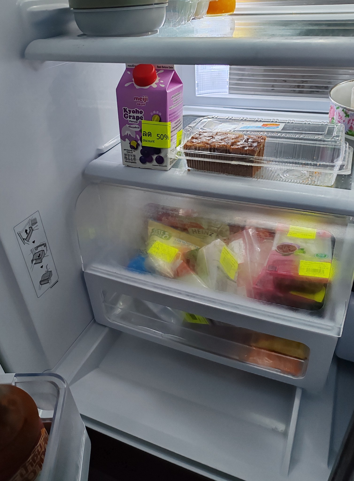 วันนั้นลืมถามด้วยครับ ป้ายเหลืองในตู้เย็นทำไมมันเยอะจังไปสอยที่ไหนมาเนี่ย นับเป็นคนละครึ่งได้ไหมนะ55
