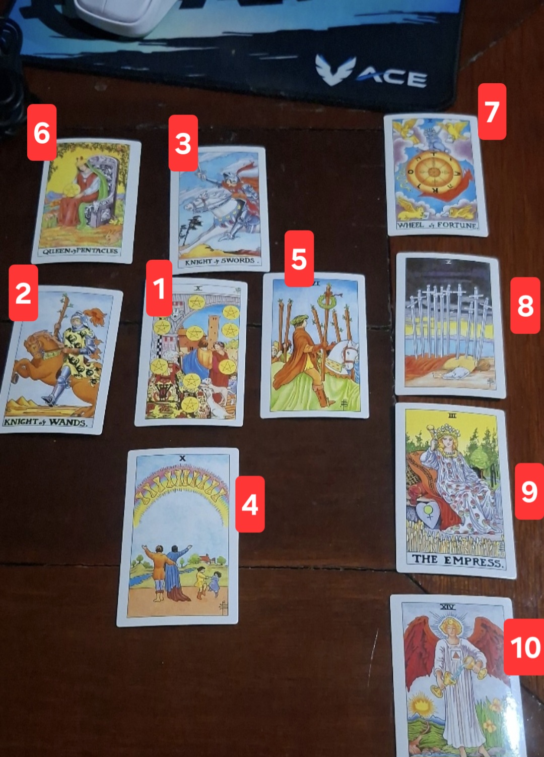 1.ACE OF SWORDS 2.THE QUEEN OF WANDS 3.THE KING OF WANDS 4.THE KNIGHT OF PENTACLES 5.THE KING OF PENTACLES 6.THE ACE OF WANDS 7.The High Priestess 8.THE KNIGHT OF WANDS 9.THE SEVEN OF SWORDS 10.THE TW