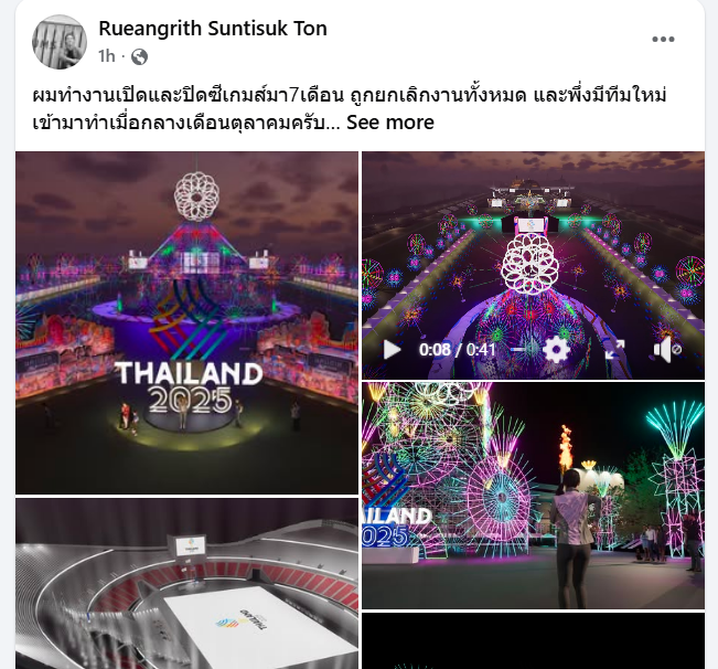 เรืองฤทธิ์ สันติสุข ไดเรกเตอร์พิธีเปิดซีเกมส์ ครั้งที่ 33 โพสต์ข้อความร่ายยาว ถูกยกเลิกงานทั้งหมดทั้งที่มีการเตรียมงานมากว่า 7 เดือน สุดมึนฝ่ายจัดจ้างทีมใหม่มาทำแทน เฟซบุ๊ก “Rueangrith Suntisuk