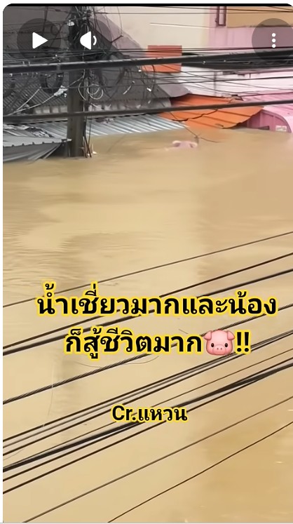 หมูที่ขึ้นไปอยู่บนหลังคา รอดตายจากน้ำท่วม จิตอาสาเอาไปเลี้ยงต่อที่ จ.อุดร