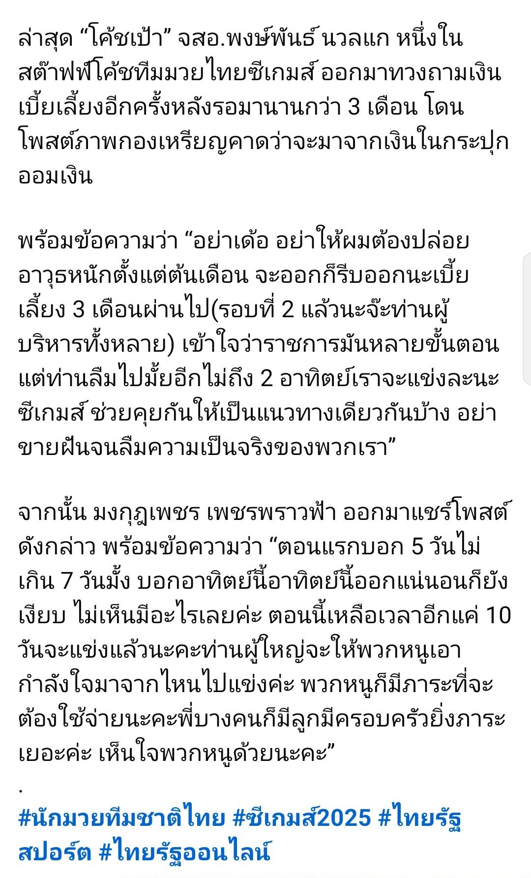 🥊 นักมวยทีมชาติไทย ชุดล่าทองซีเกมส์ 2025 ทวงเบี้ยเลี้ยงรอบ 2! ถามจะเอากำลังใจมาจากไหน