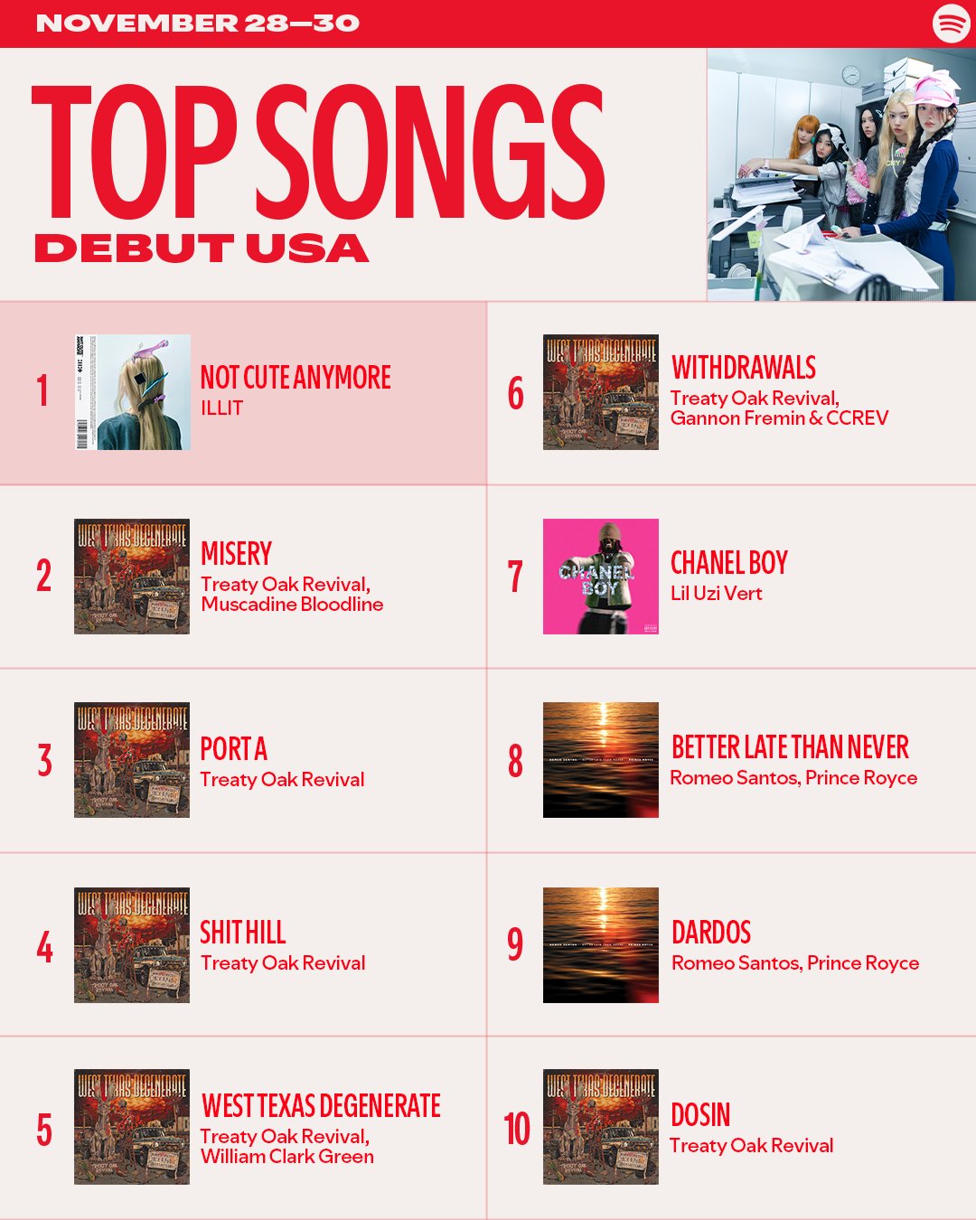 ILLIT “NOT CUTE ANYMORE” เดบิวท์เข้าสู่ชาร์ต Spotify [USA] Daily ได้สำเร็จ.