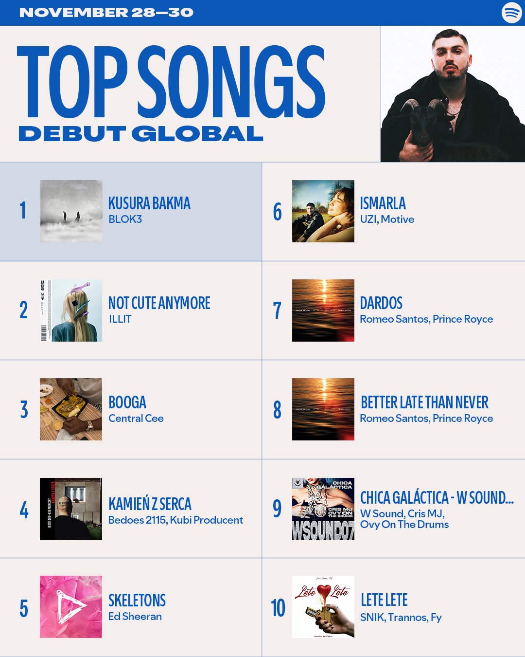 Spotify TOP SONGS DEBUT GLOBAL เปิดตัวอันดับ 2 ชาร์ตนี้คือเพลงใหม่มาแรงที่คนฟังบน Spotify เยอะที่สุดของโลก