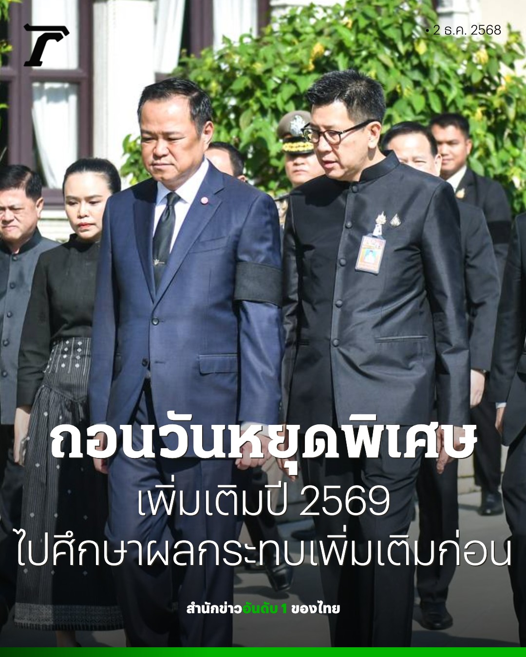 ครม. ถอนวันหยุดพิเศษเพิ่มปี 2569 ไปศึกษาผลกระทบ หวั่นกระทบผู้ประกอบการ-การจ้างงาน https://www.thairath.co.th/news/politic/2899369