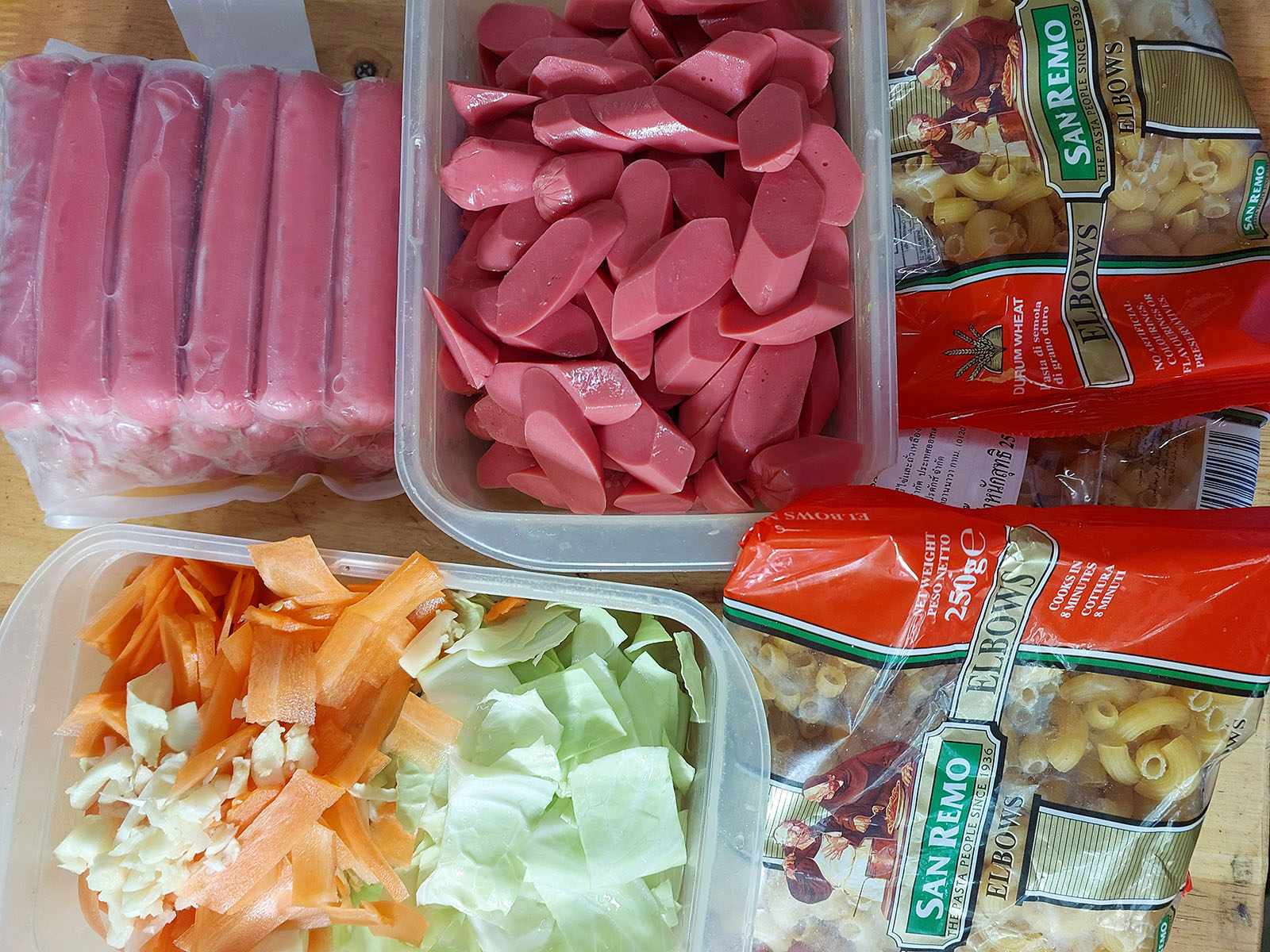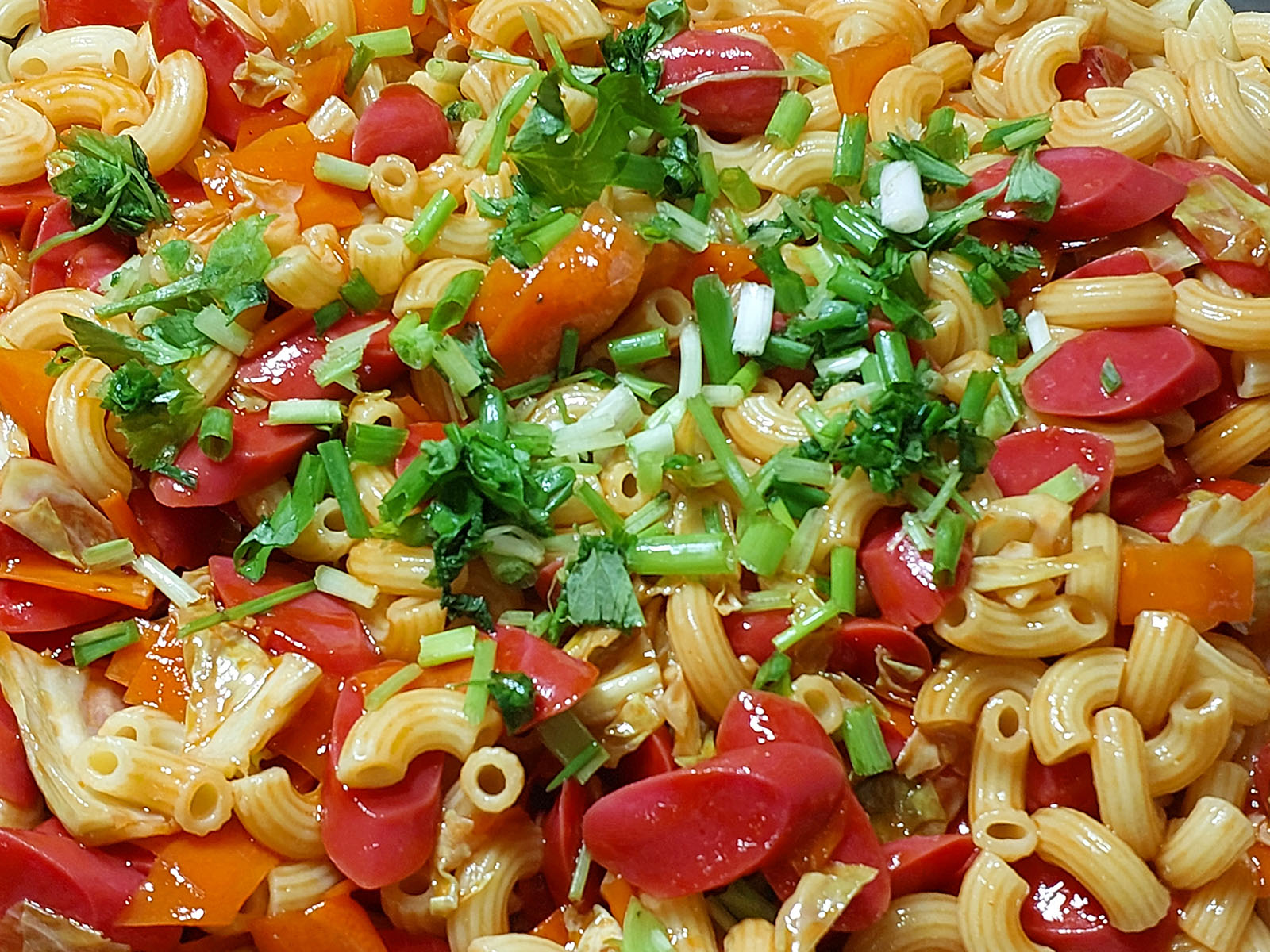 มักกะโรนีผัดไส้กรอกไก่