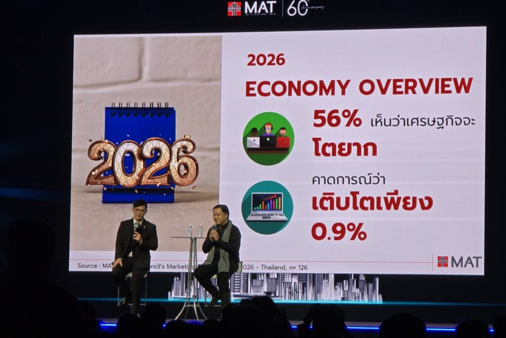 ในจำนวนนักการตลาด 126 มีถึง 56% ที่มองว่า เศรษฐกิจไทยปี’69 จะโตยากยิ่งกว่าปี’68 และเศรษฐกิจอาจจะเติบโตเพียง 0.9% เท่านั้น ซึ่งเป็นตัวเลขที่ต่ำที่สุดเป็นประวัติการณ์นับตั้งแต่สมาคมฯ เริ่มทำการสำรวจมา