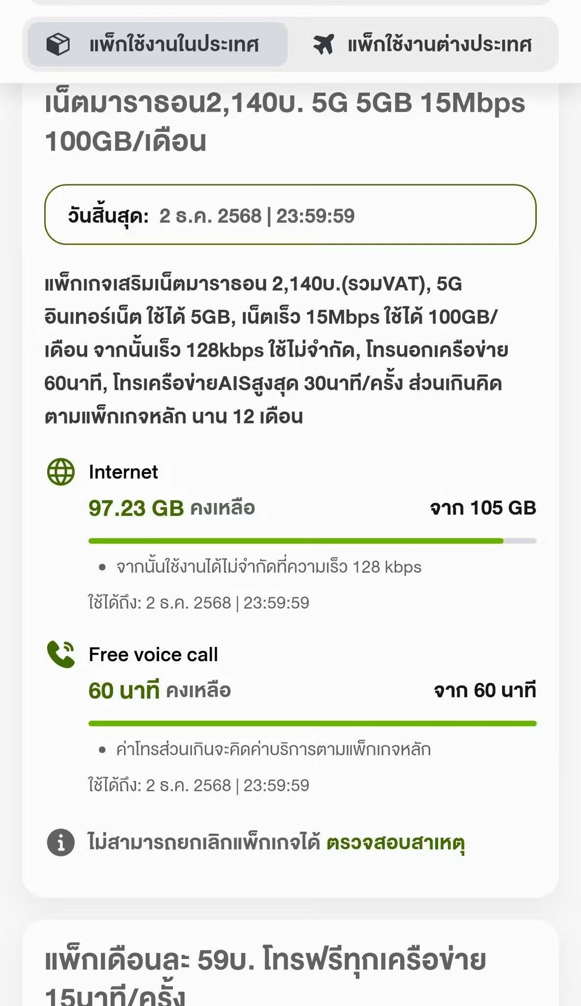 เผลอยกเลิกแพ็กเกจ 150B 100GB speed 4Mbps