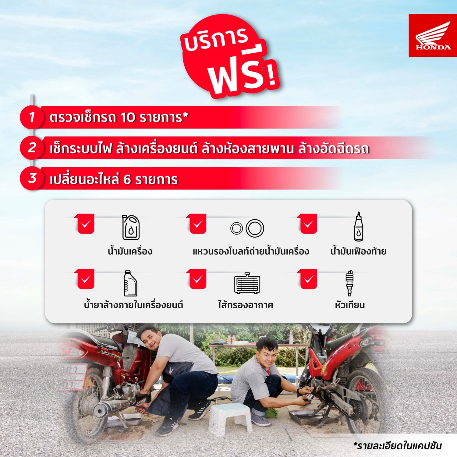 พร้อมเปลี่ยนอะไหล่ฟรี 6 รายการ* โดยช่างศูนย์บริการฮอนด้าจากทั่วประเทศ