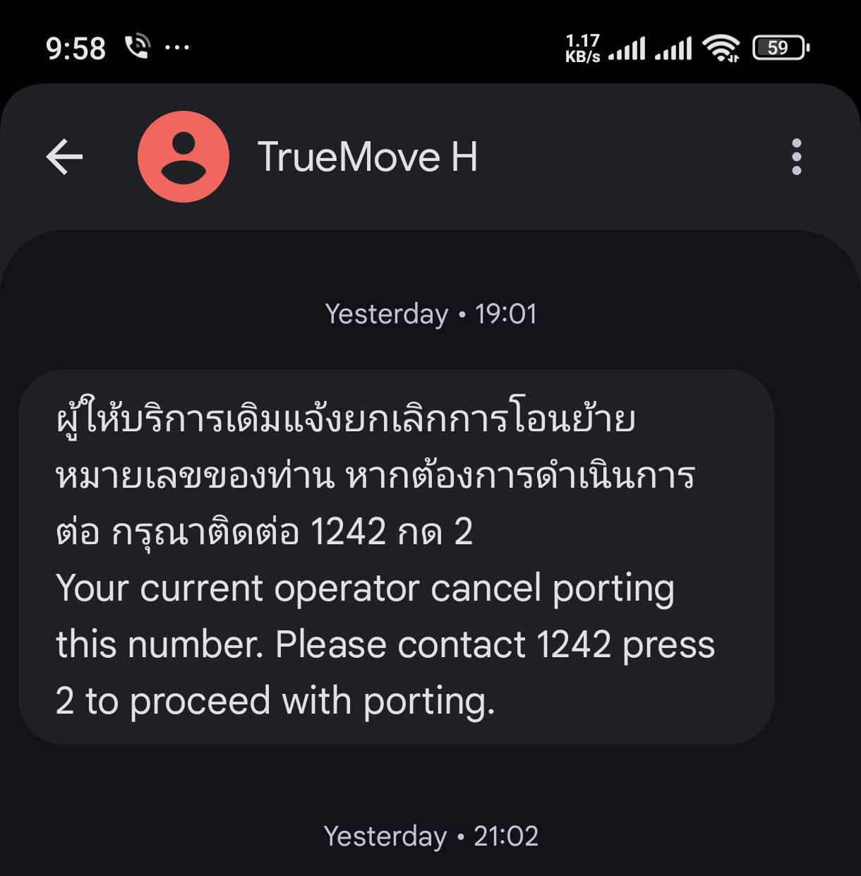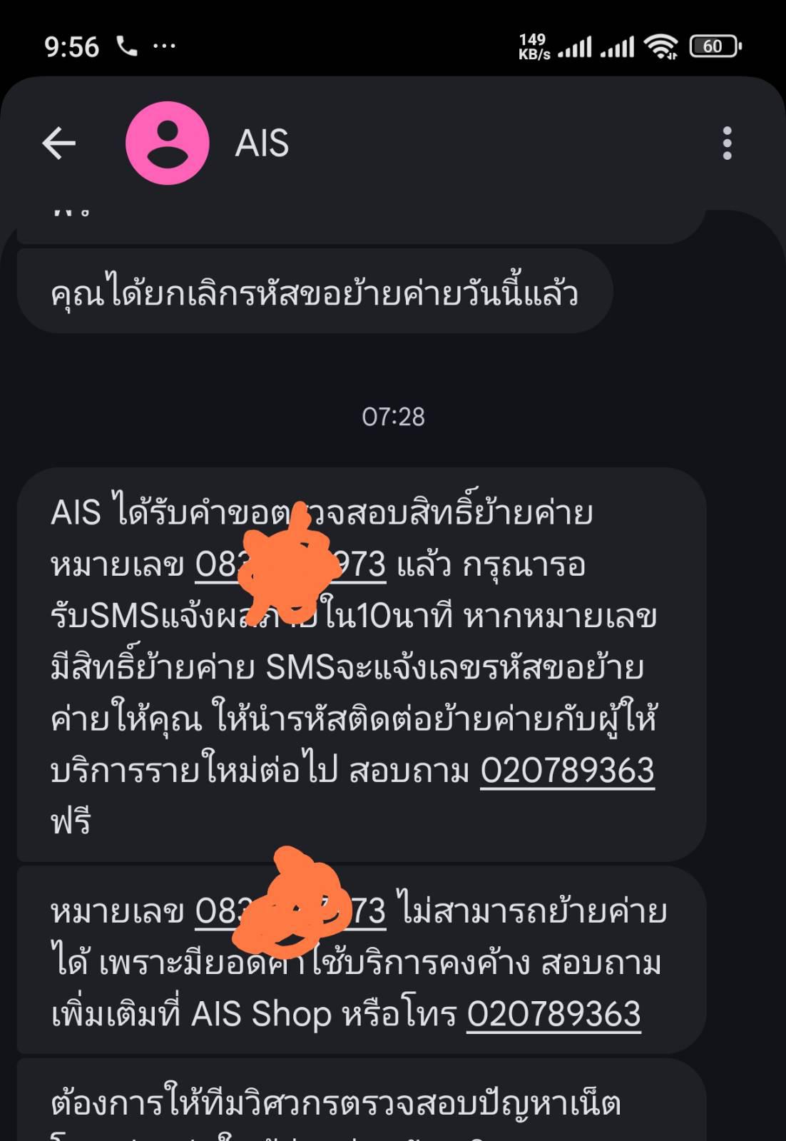 ได้ข้อความว่า ais ยกเลิกการย้าย