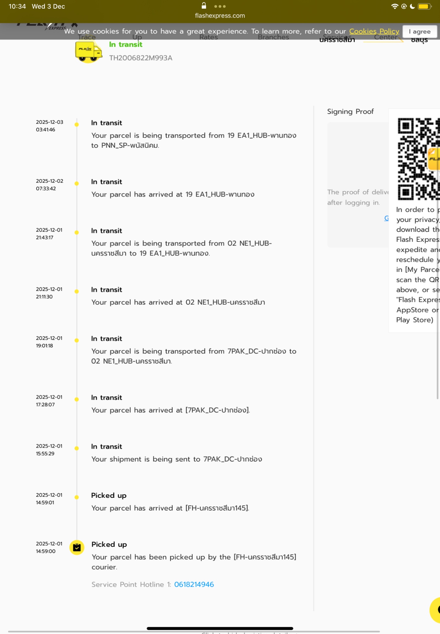 ใช้ flash express สถานะไม่อัพเดตเกิน 24 ชั่วโมงแล้วครับ นิ่งเลย ไม่ขยับเลยตั้งแต่วันที่26 CNTHF001220350